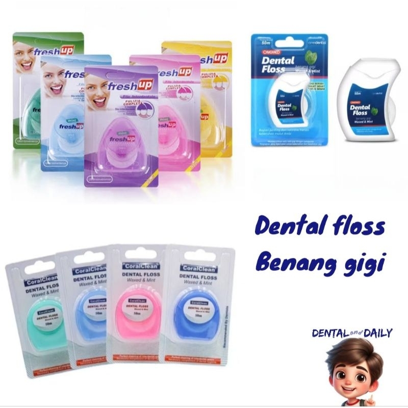 Dental floss benang gigi waxed and mint 50 meter fresh up onemed coral clean Oral-B Satin floss
