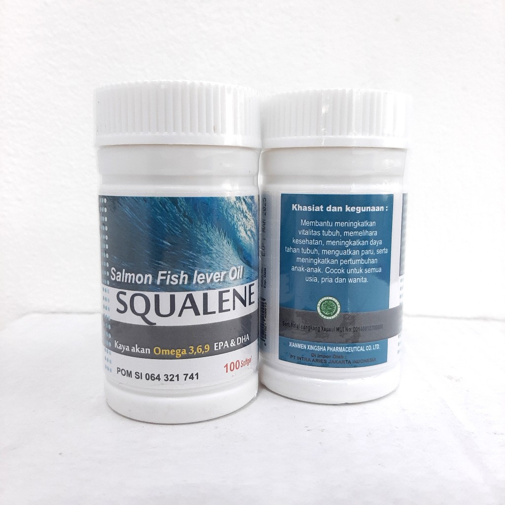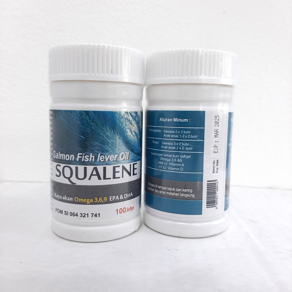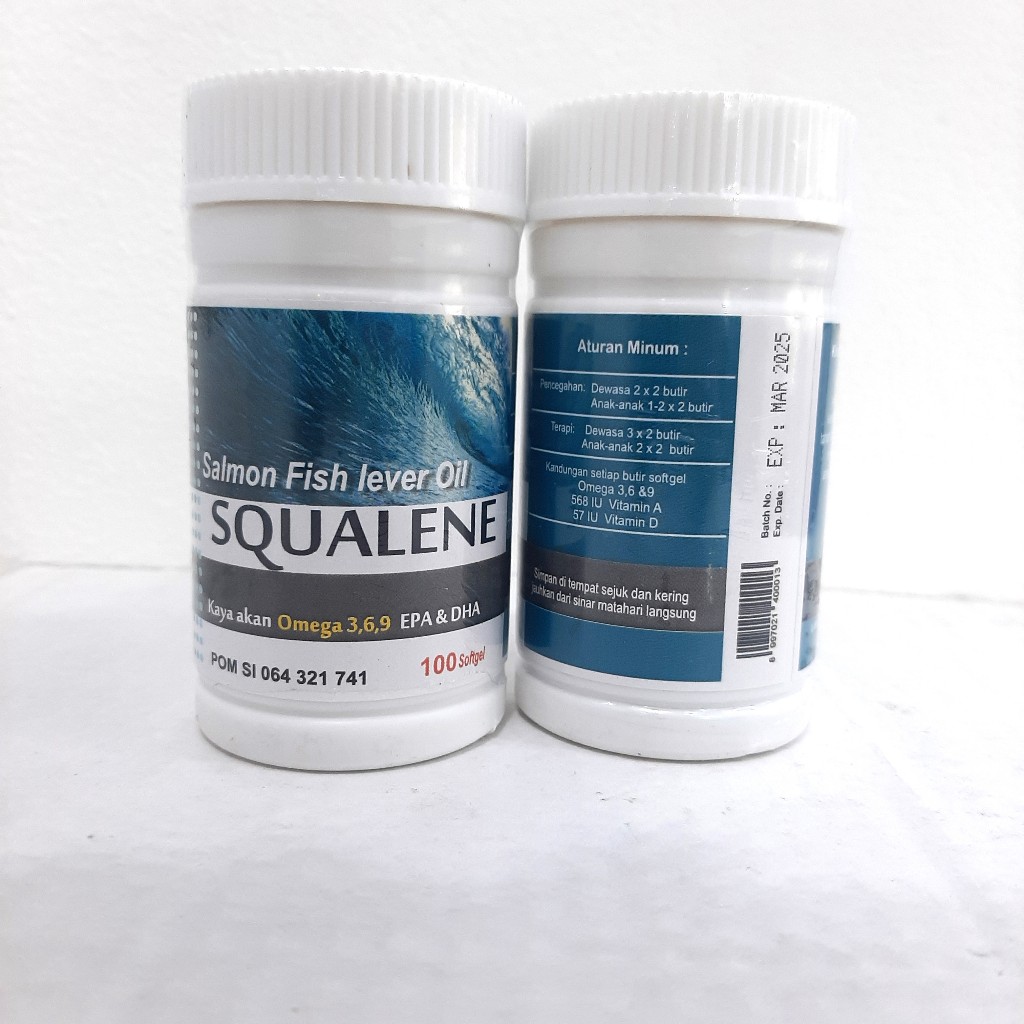 Squalene Minyak Ikan Salmon Isi 100 Softgel / Squalene Fish Lever Oil 100% Original / Kaya Omega 3 6 9 EPA + DHA Ofish Oil
