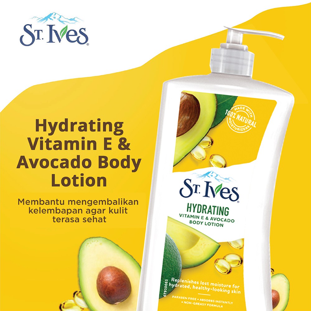 St. Ives Body Lotion HYDRATING Vitamin E & Avocado 400ml - 100% Pelembab Alami