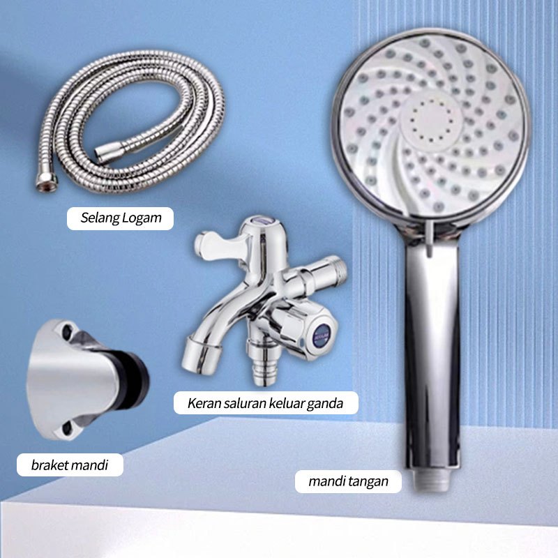 Stainless Hand Kran Shower 5 MODE Fungsi Paket Shower Mandi Shower Standar Komplit Kran 120cm dan Braket System