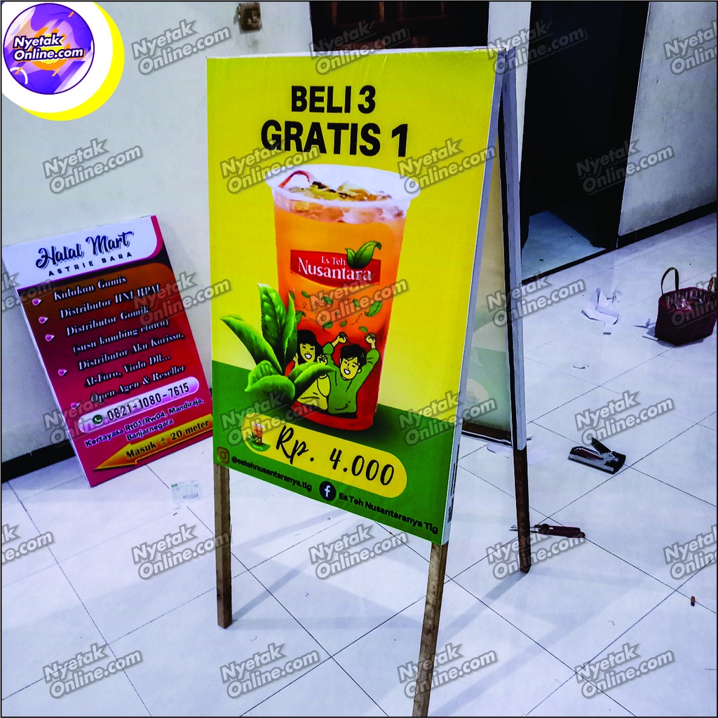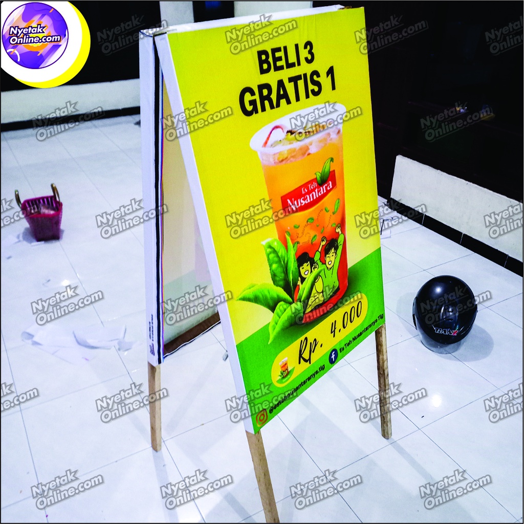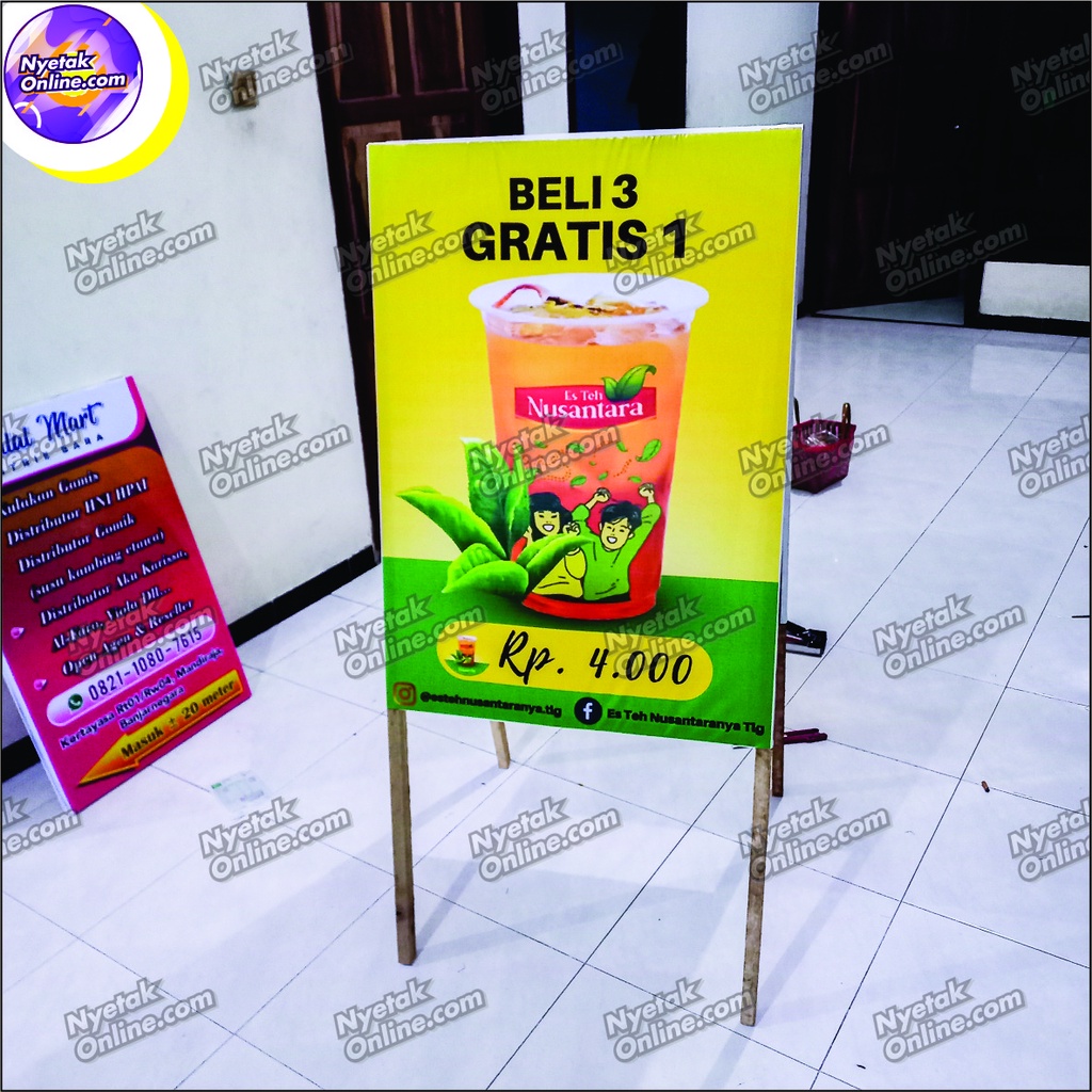 Stand Banner kayu ukuran 60cm x 130cm custom 2 sisi