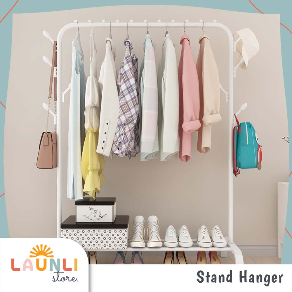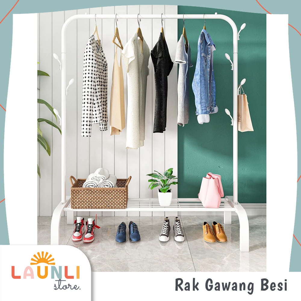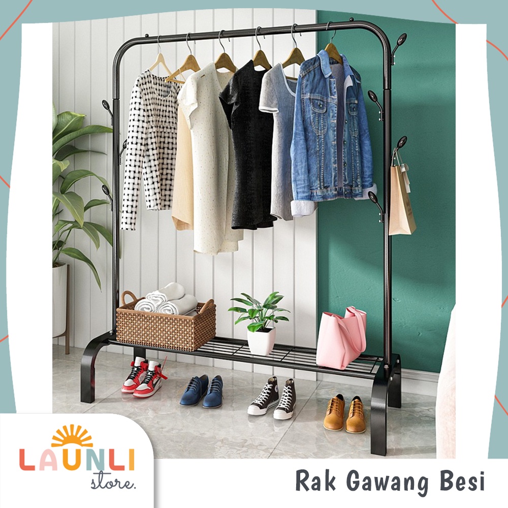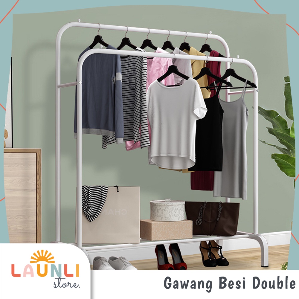Stand Hanger Baju Gawang Besi 2 & 1 Tiang Stand Hanger Besi Double Standing Rak Display Butik