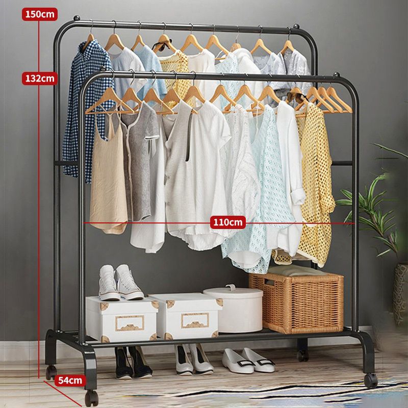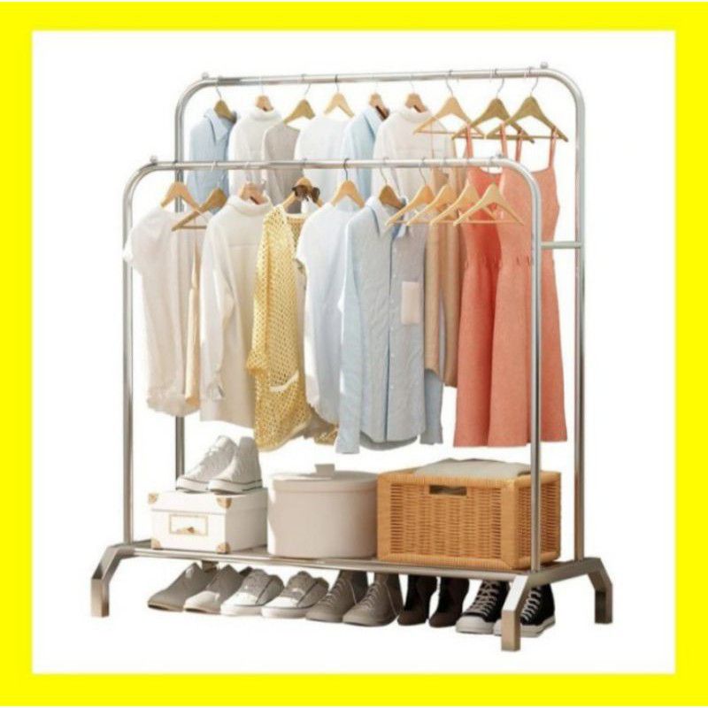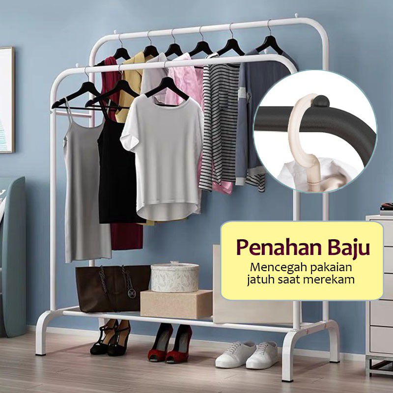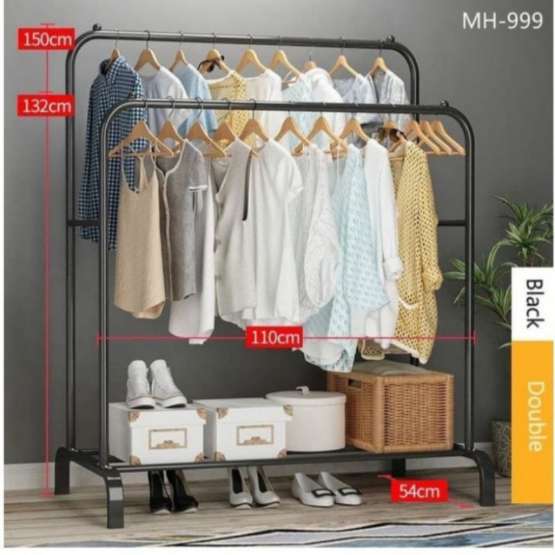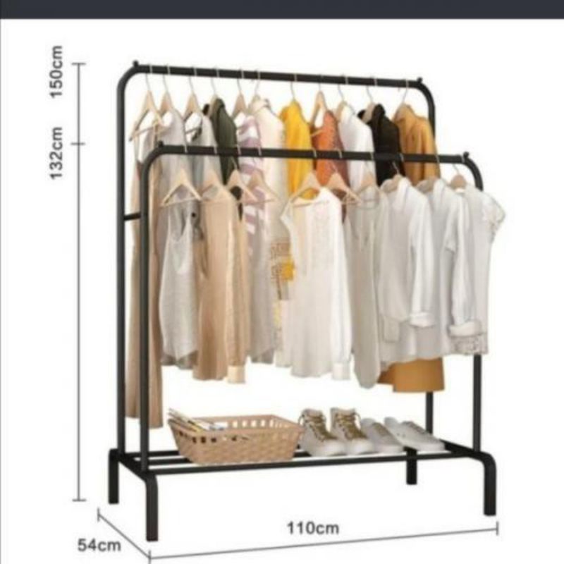 Stand Hanger Besi Double Rak Gantungan Baju Besi Pakaian