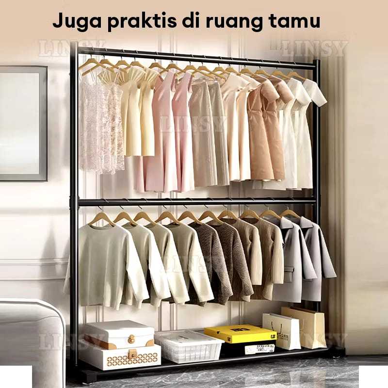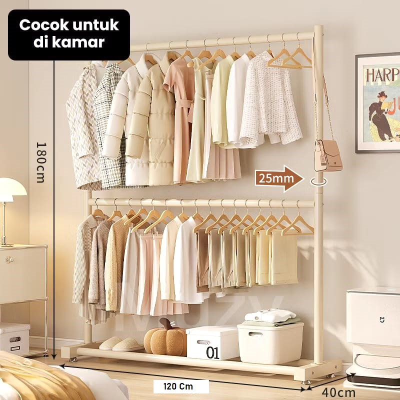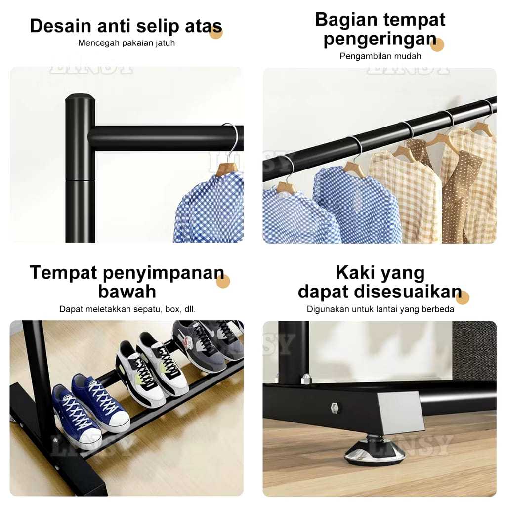 Stand Hanger Gantungan Baju / Gantungan Baju Besi / Rak Baju Estetik Minimalis / Tiang Gantungan Baju 120 x 180 x 40 CM