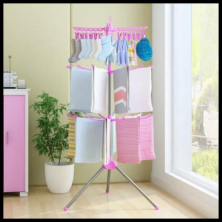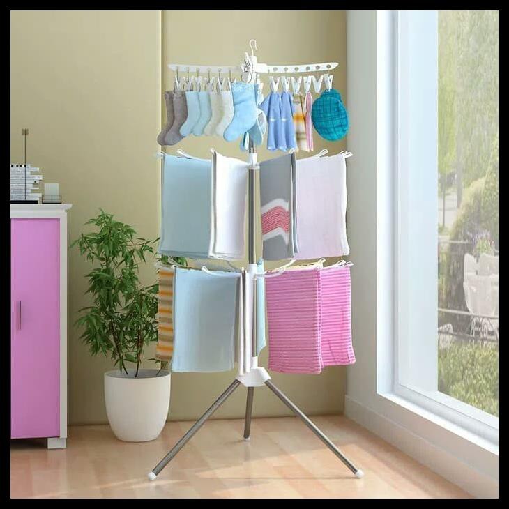 Stand Hanger Jemuran Baju Berdiri Model Menara Jemuran Portable - White