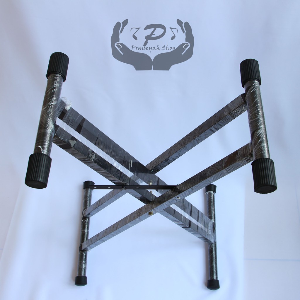 Stand Keyboard Double Kaki Besi Kokoh Kuat