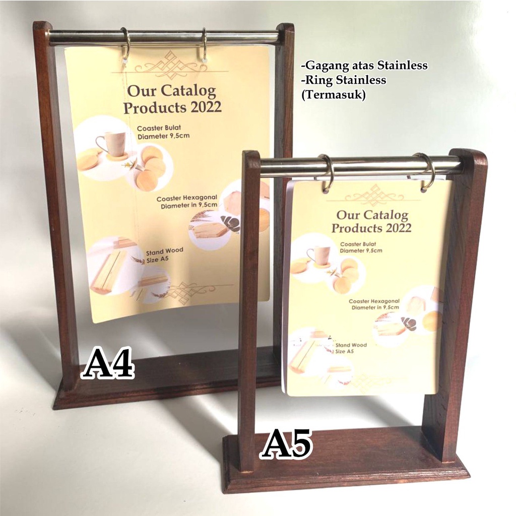 Stand Menu Stainless Ukuran A5 Menu Stand Nomor Meja Stand Display Gagang Stainless