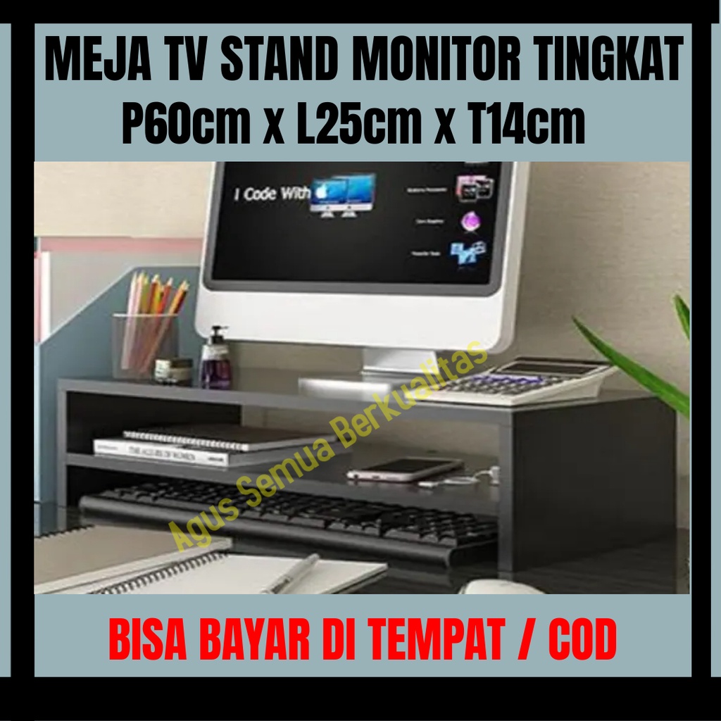 Stand Monitor Rak Meja Laptop Dudukan Alas Tatakan Layar Tv Penyangga Holder Leptop Aksesoris Komputer TINGKAT P60cm x L25cm x T14cm Belum di Rakit