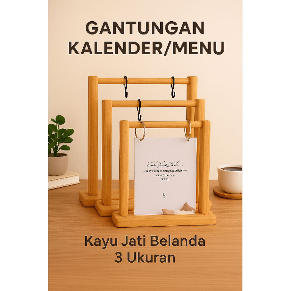 Stand gantungan menu , kalender , hanger nomer kayu jati belanda || tampilan berkelas untuk menu,kalender, promo ,hanger nomer berkualitas dan di kerjakan oleh pengrajin lokal hand made