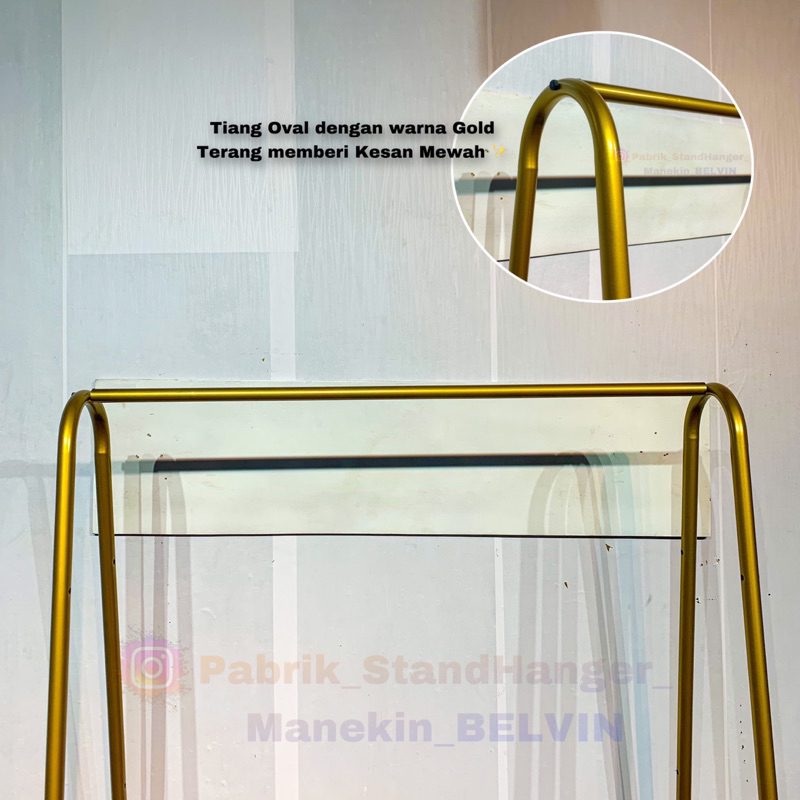 StandHanger Viral Terbaru Tiang Oval Kaki Siku Gold | Display Baju Mewah 180 CM | Display Baju Gold | Display Premium | Gantungan Baju Gold | Gawang Baju Premium | gawang mewah | gawangan baju gold | gawang pakaian butik mewah | gawang viral | gawangan
