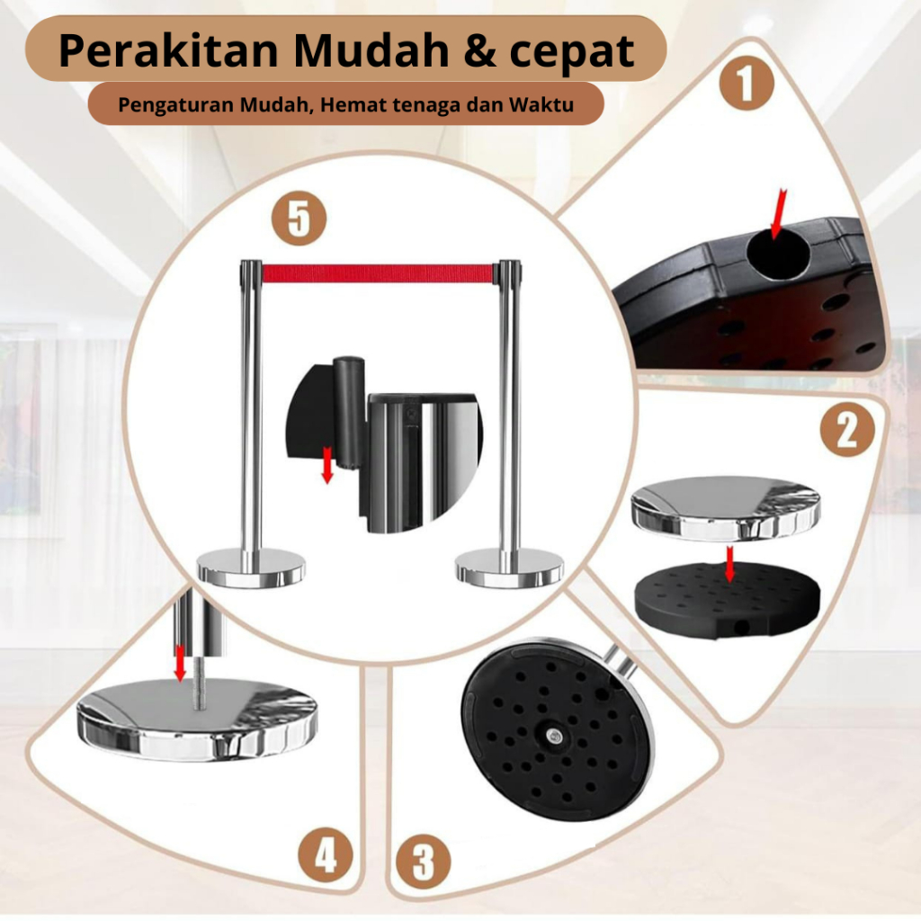 Standing Barrier Queue Line / Tiang Antrian Stainless Penghalang Jalan / Tiang Pembatas Jalan