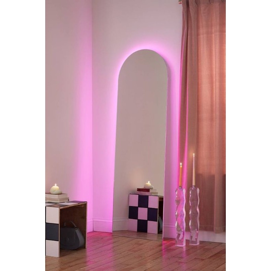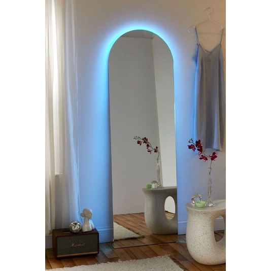 Standing Mirror Oval Frameless Ukuran 45x153 cm Cermin Rias Berdiri Full Body Tan[a Frame Dengan Led