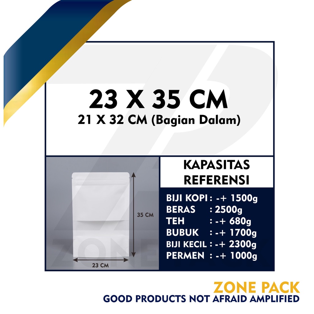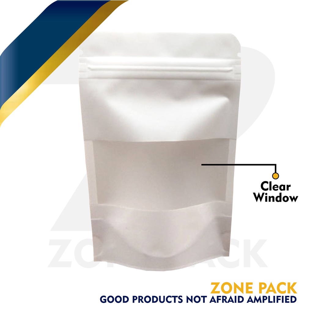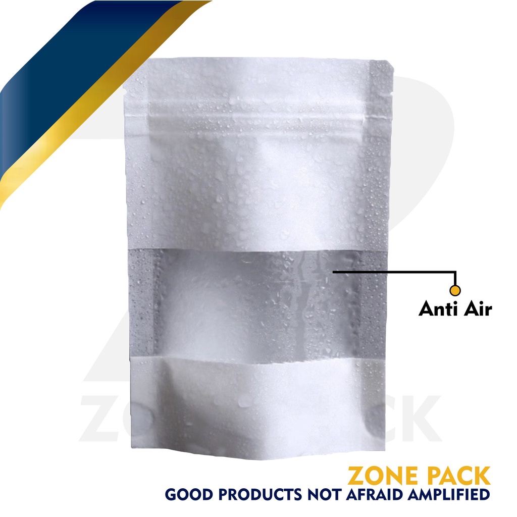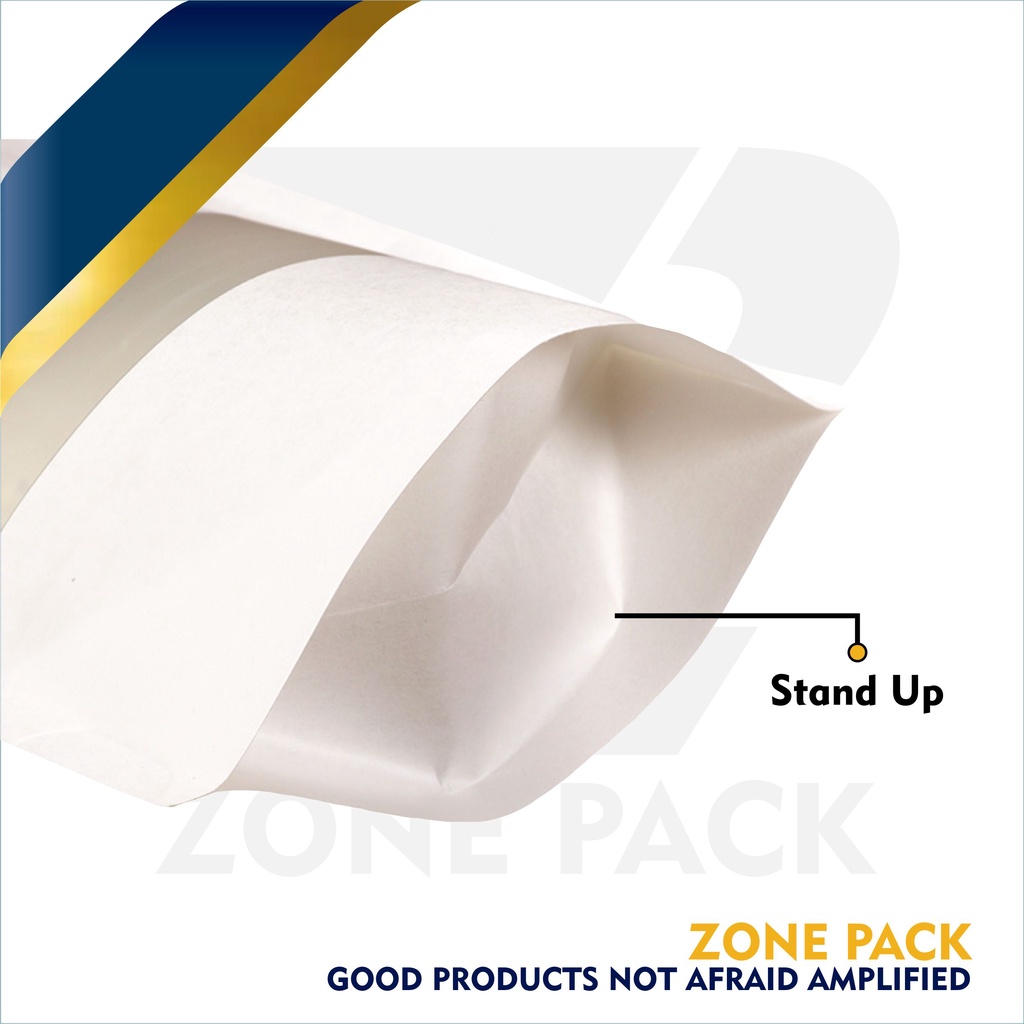 Standing Pouch Craft Windows Warna Putih Ukuran 23x35 cm I Kemasan Kopi I Kemasan Paper Ziplock