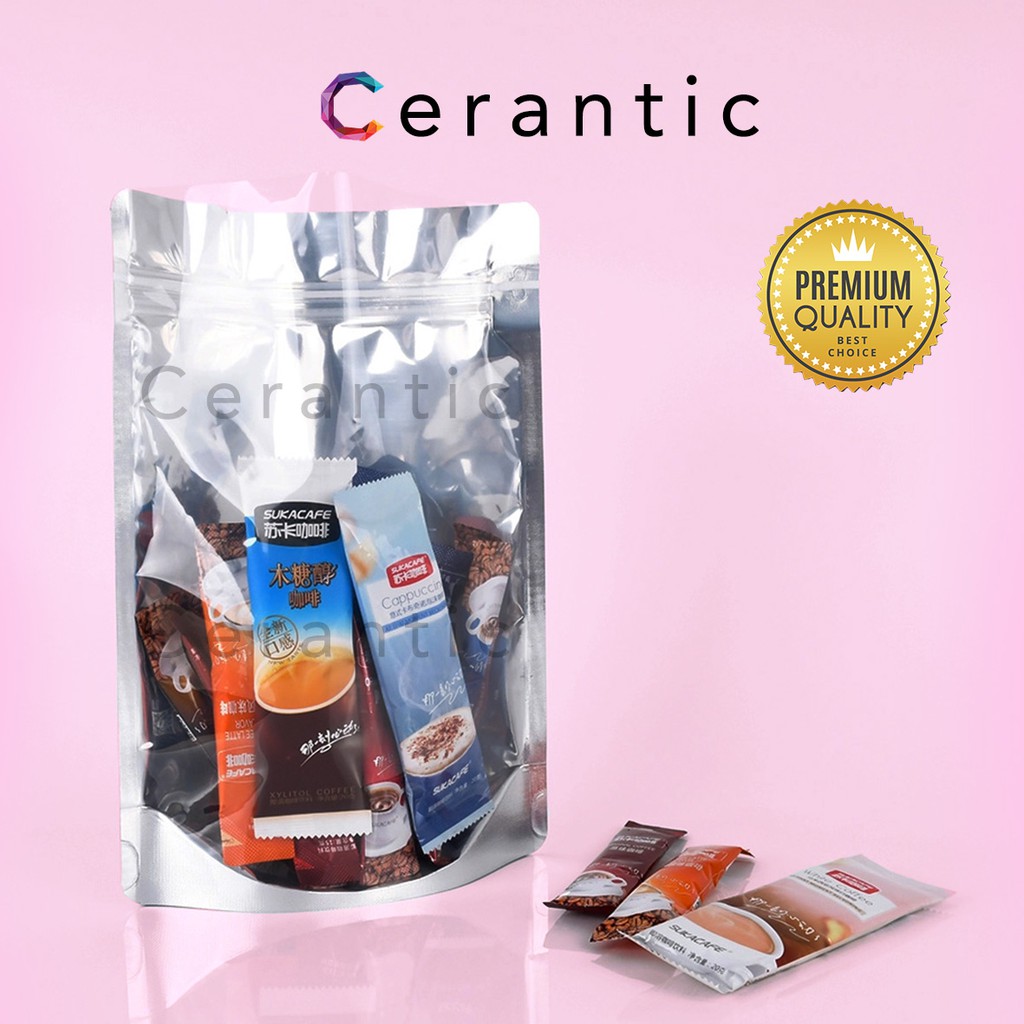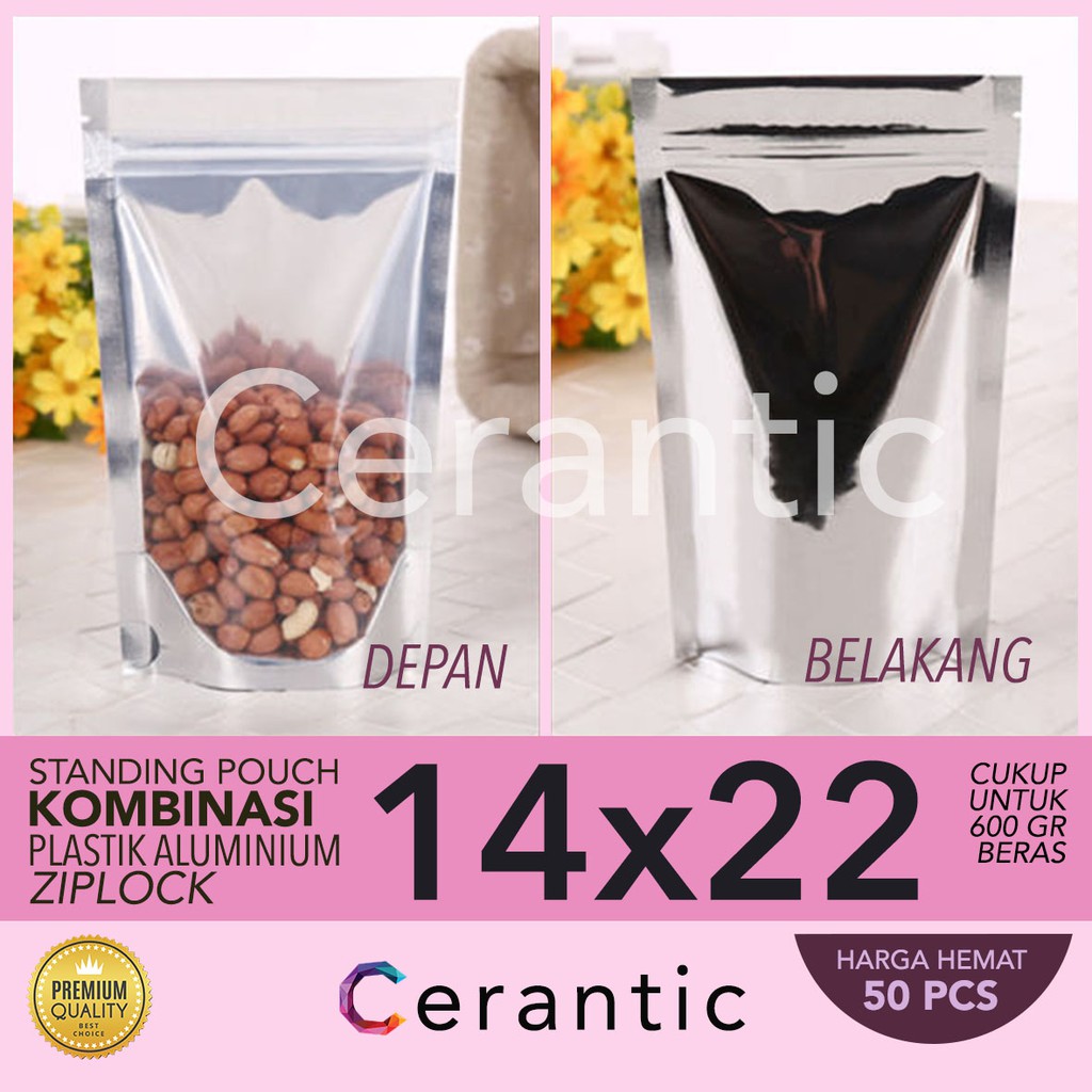 Standing Pouch Kombinasi Plastik Aluminium Foil 14 x 22 - 600 gr Premium Quality - 14x22 cm