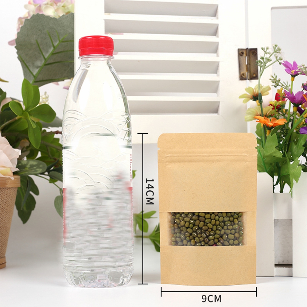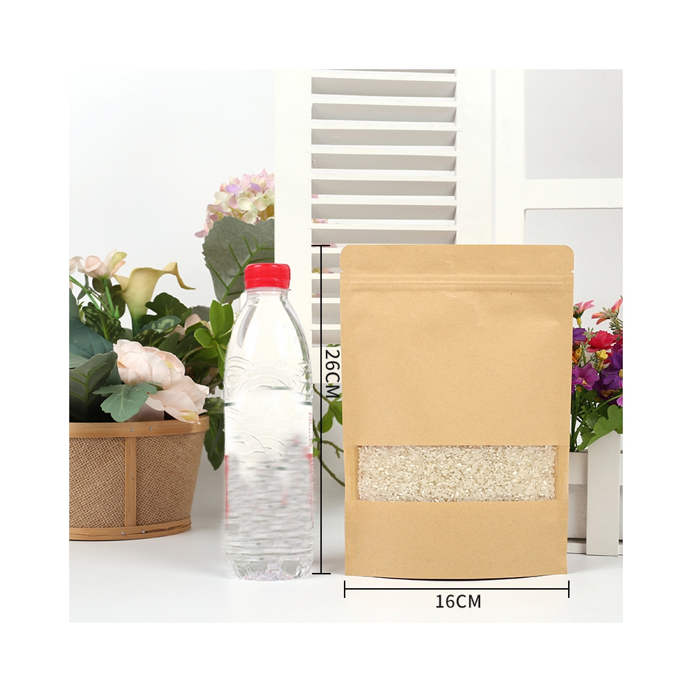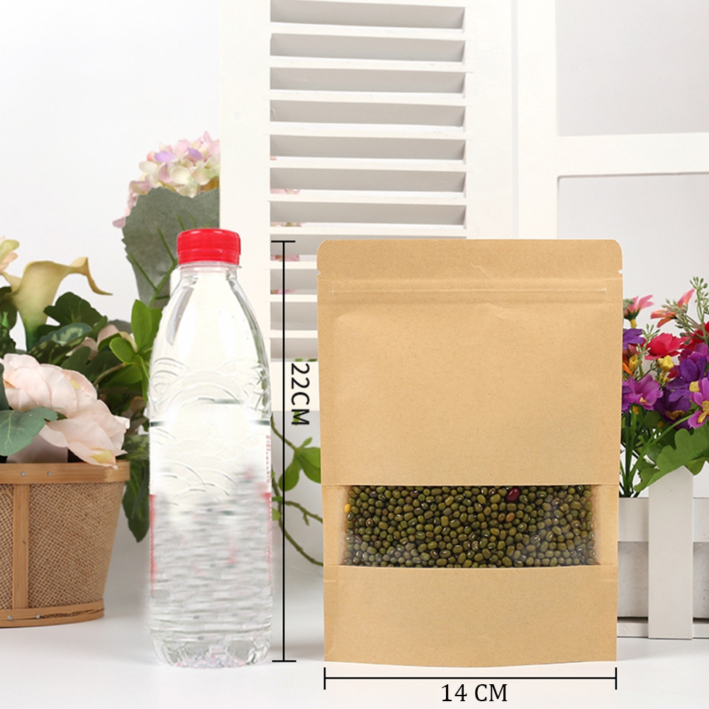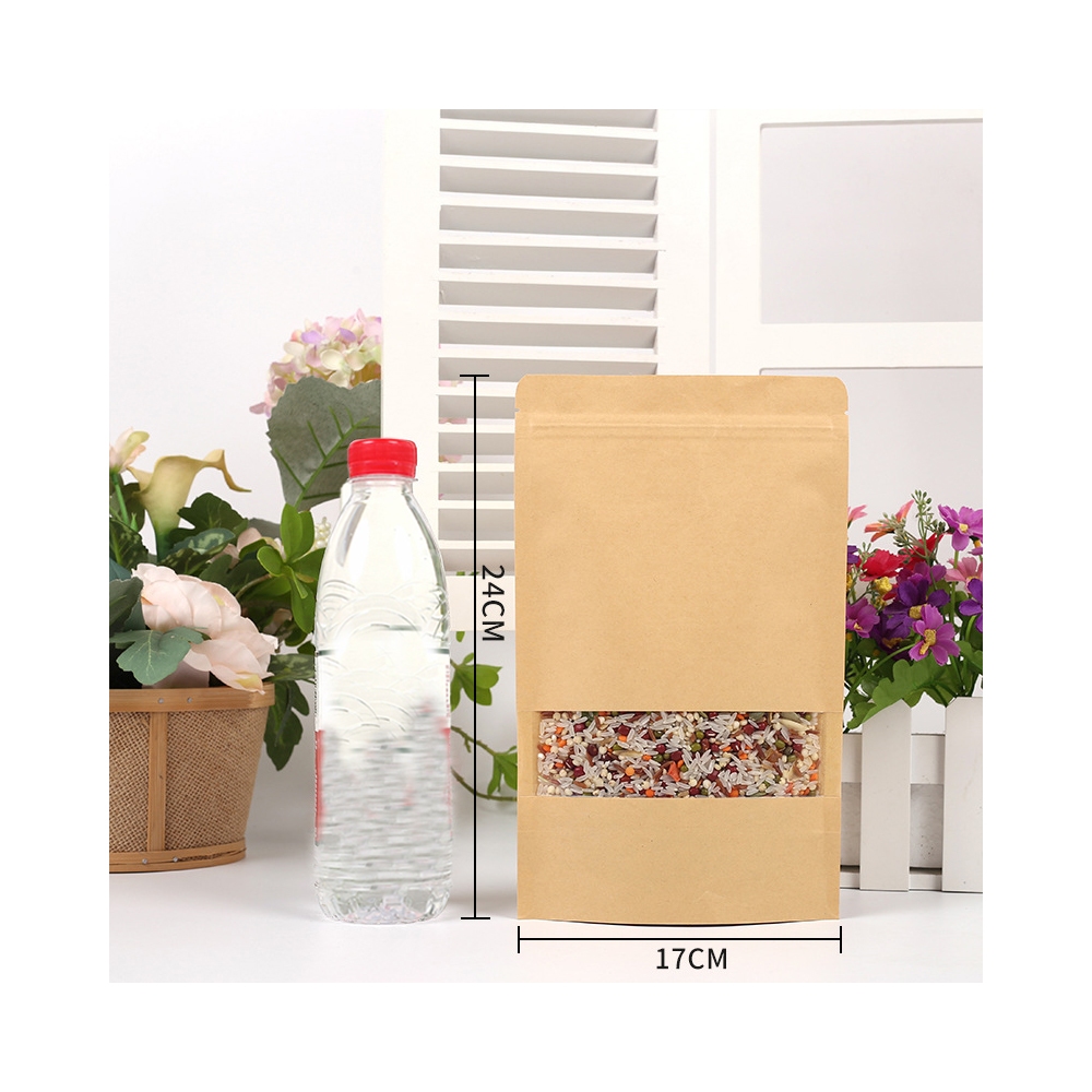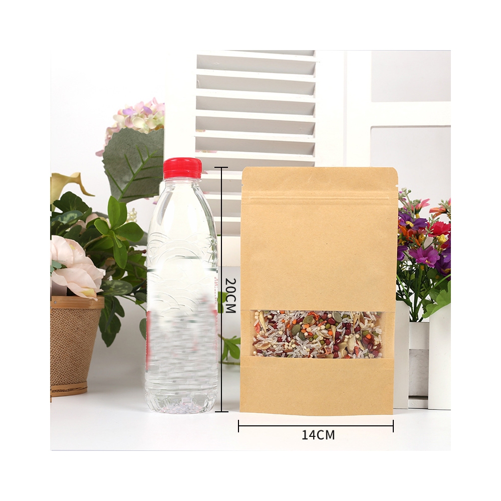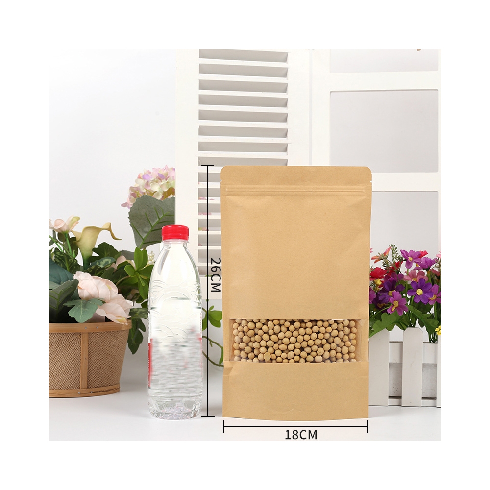 Standing Pouch Kraft Paper Window Zipper Food Storage Ziplock Plastic Klip Kemasan Snack Kacang 100PCS 20x30cm Untuk kemasan 1kg