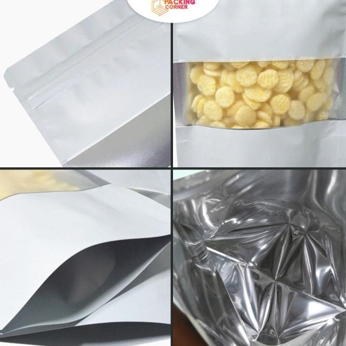 Standing Pouch Window Putih 12x20 cm Plastik Alumunium Foil METALIZED