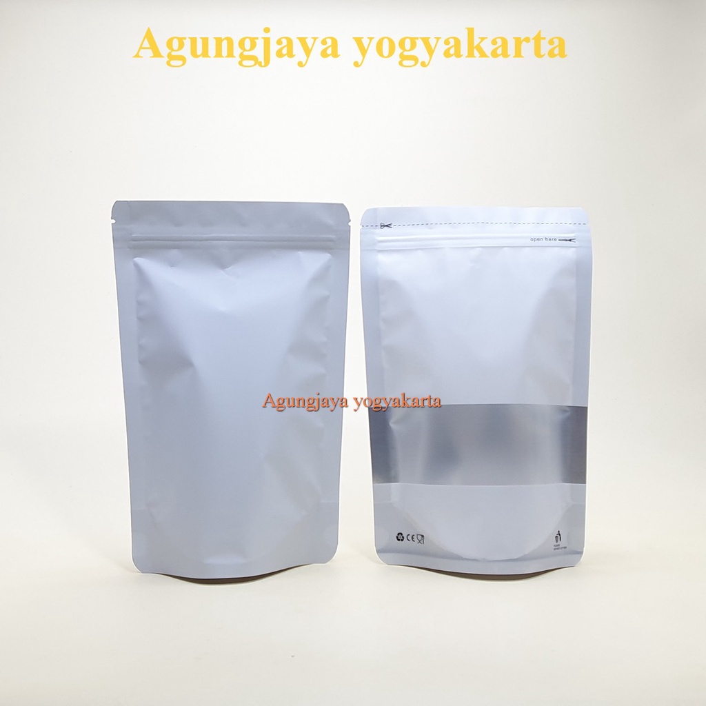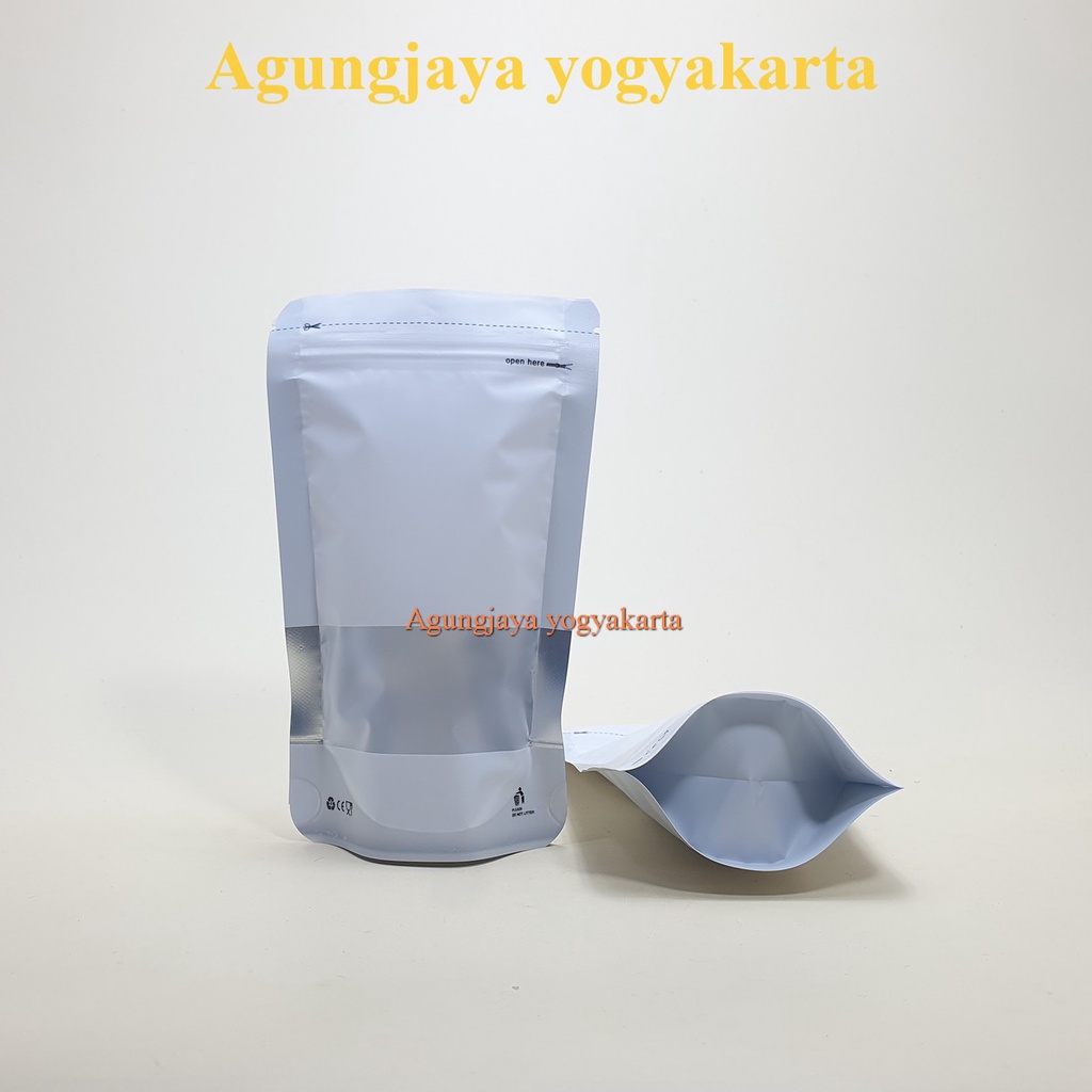 Standing Pouch Window Transmetz Putih Line Z @ Pcs Series / Pouch Kopi / Kemasan Bubuk / Kemasan Kopi / Kemasan Snack / Pouch Window Transmetz Putih Line / Pouch Putih Line