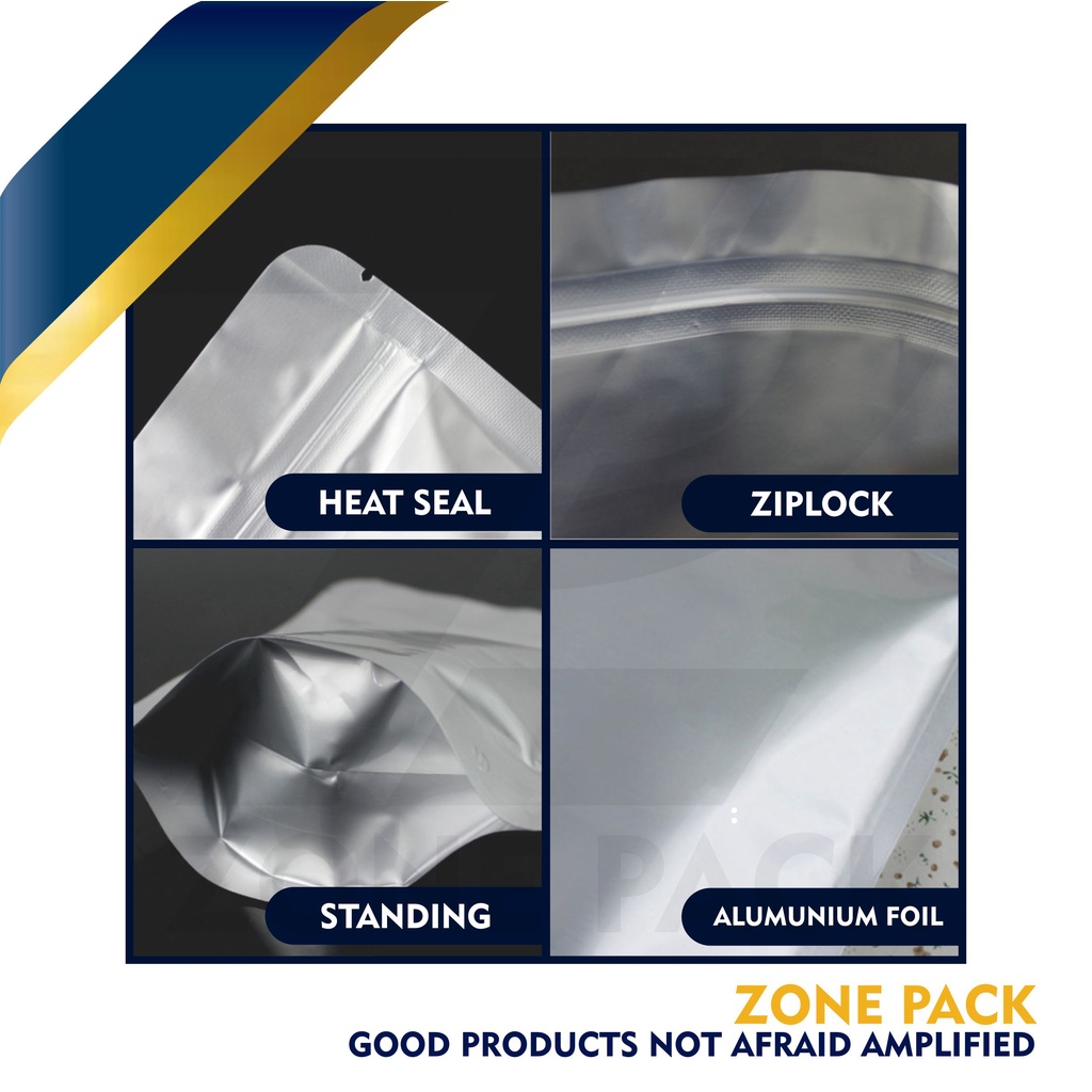 Standing Pouch full Aluminium Foil Tebal I Kemasan Kopi Snack I Kemasan Paper Ziplock