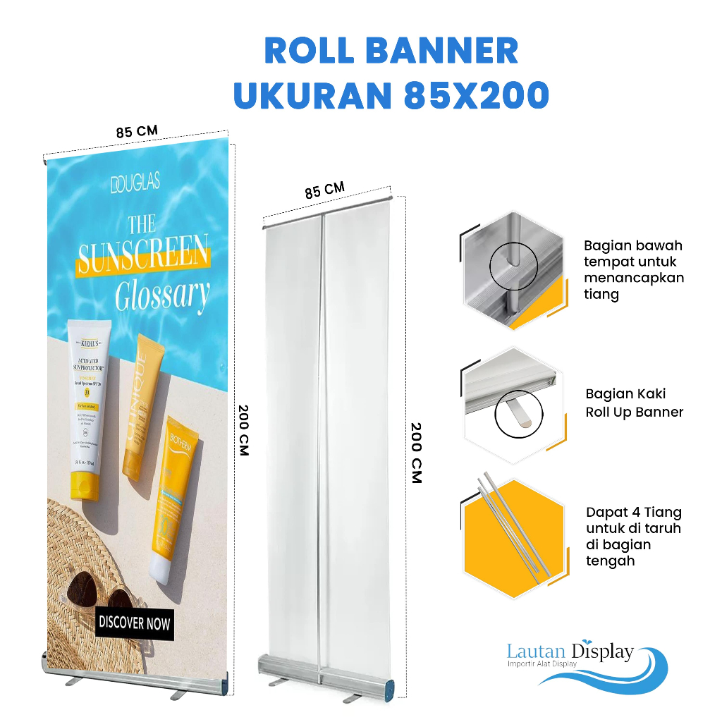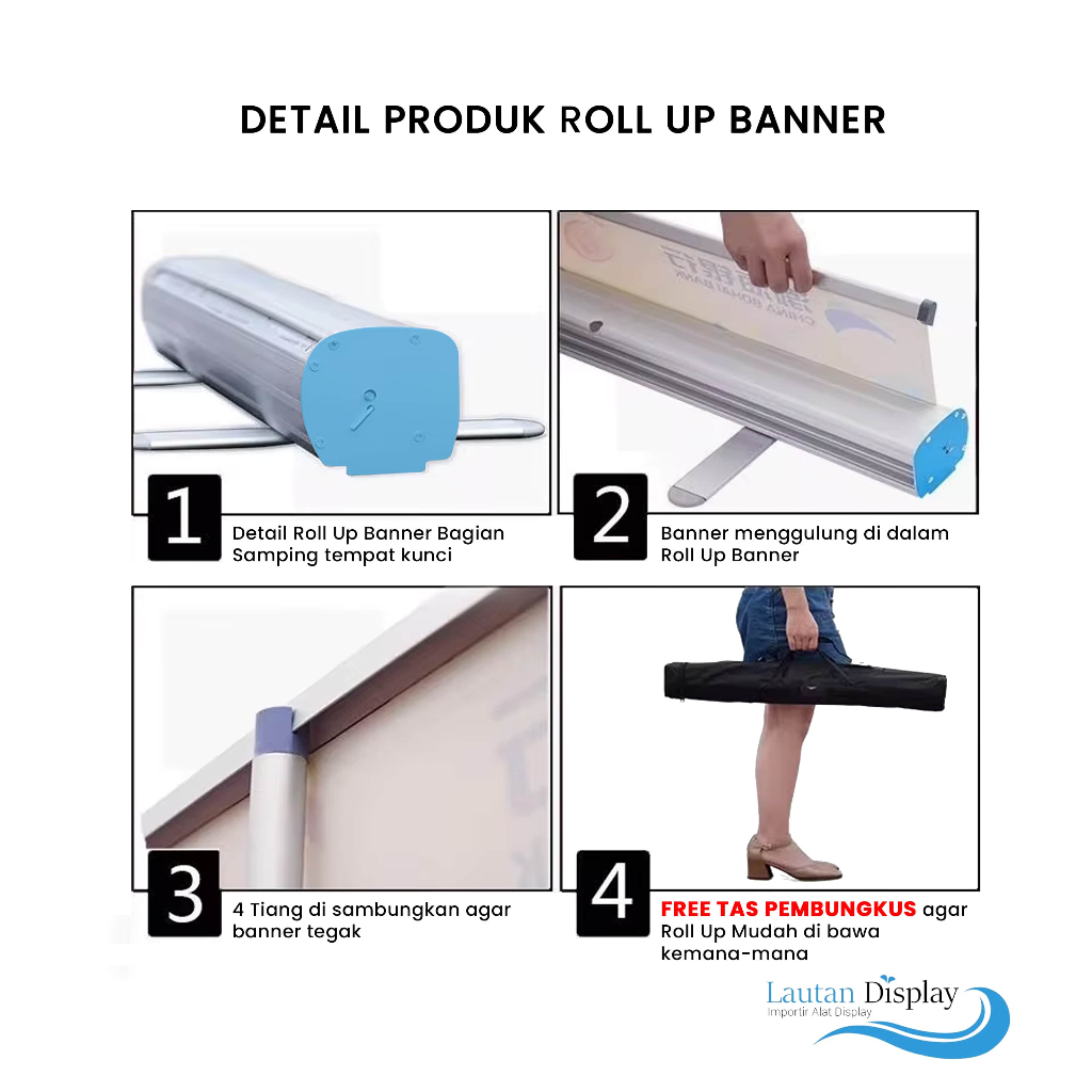 Standing Roll Up Banner 60x160 Cm Aluminium Stand Tempat Berdiri Penyangga Spanduk Berdiri Tiang 80x200 cm (HANYA RANGKA)