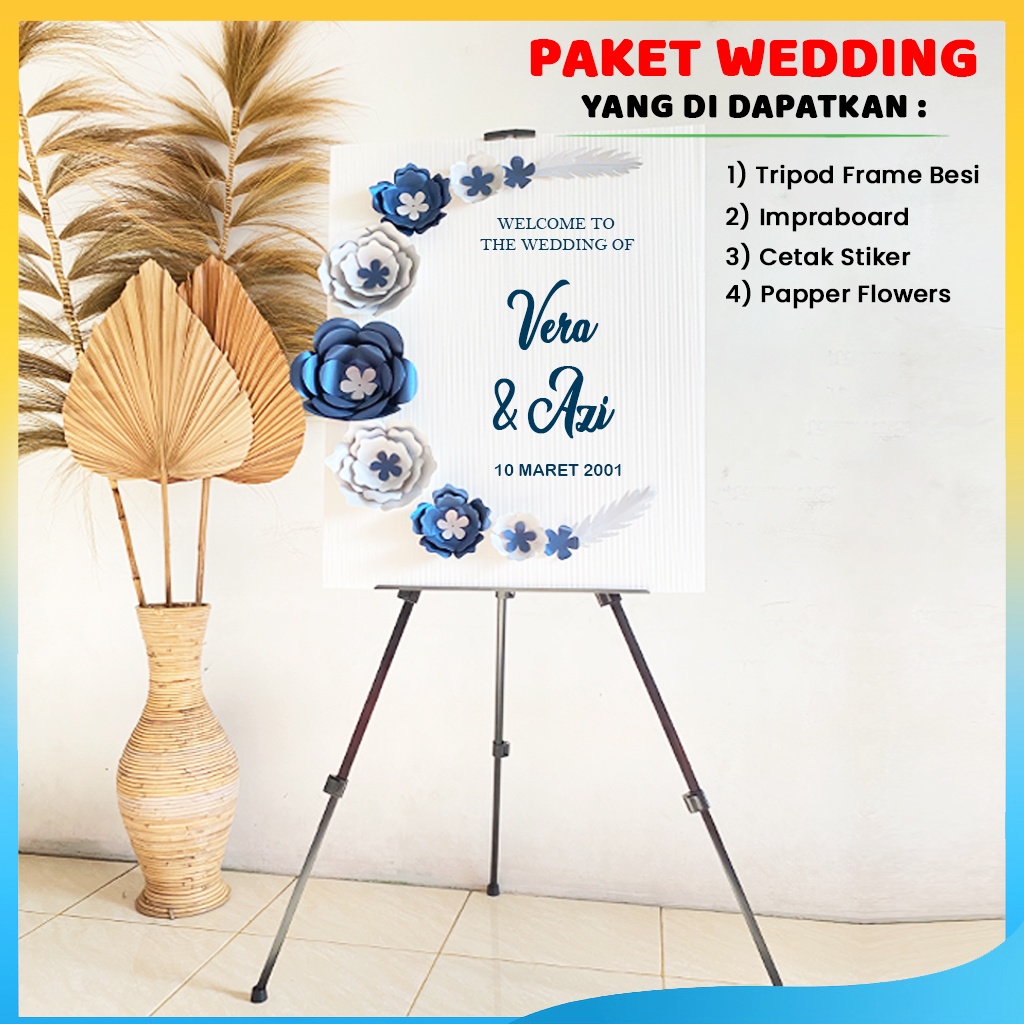 Standing Tripod Besi Kayu Plus Papan Bunga Kertas 60x80 cm Tema 1 - Karangan Bunga Papan Dekorasi Ucapan Selamat, Ulangtahun, Wisuda, Grand Opening, Wedding, Engagement, Papan Bunga Pernikahan, Duka Cita Custom