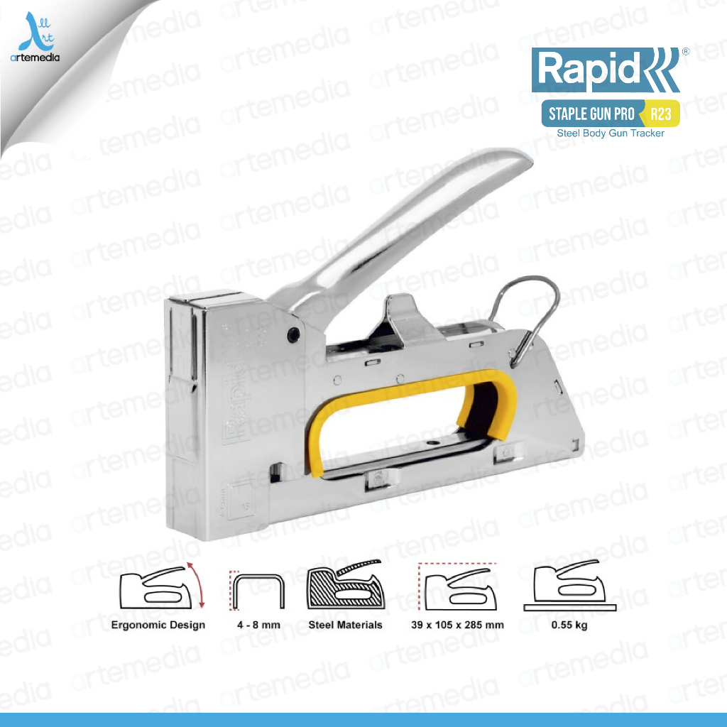 Rapid R23 Pro Heavy Duty Staple Gun | Steel Body Manual Tacker, Gun Stapler Original Sweden untuk Furnitur & DIY