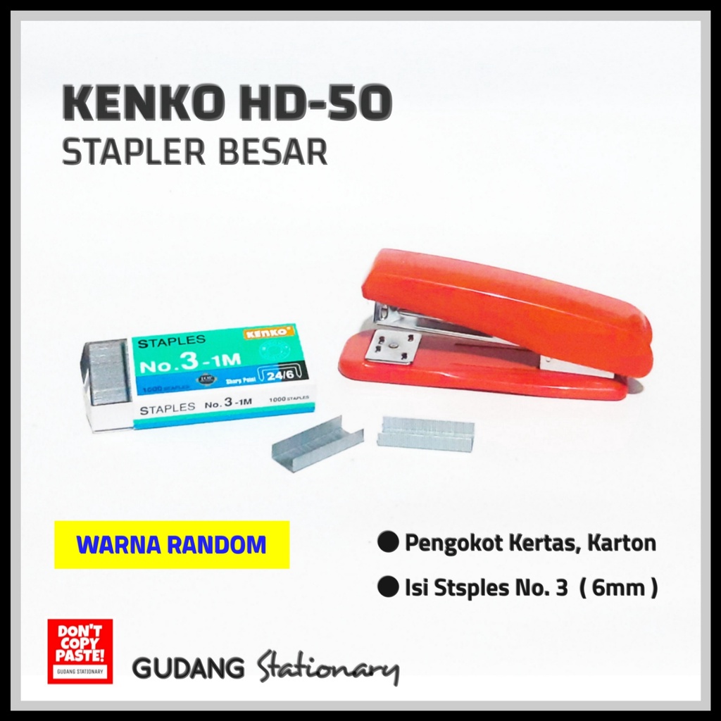 Stapler Besar 11 cm | Stapler Kertas | Alat Pengokot Kertas | HD-50 KENKO + Isi 1 Bxs
