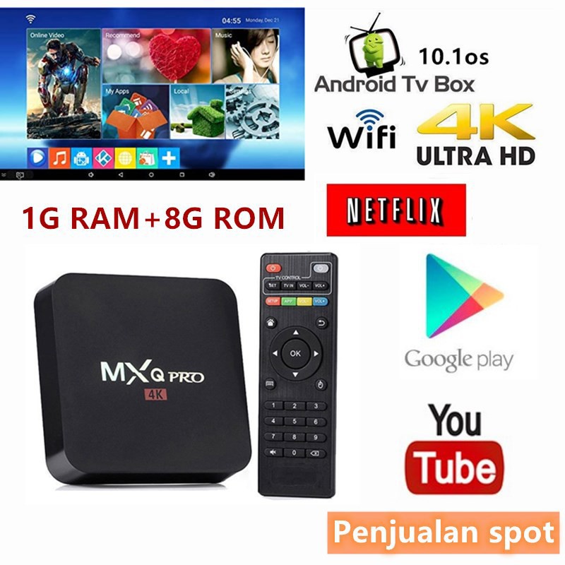 Stb Android Tv Box MXQ Pro 4K Smart Tv Box Android 10.1os Ram 1GB Rom 8GB RK3228A Dukung COD
