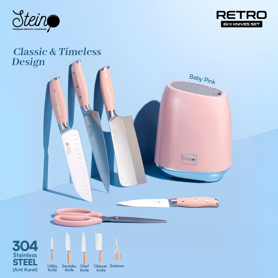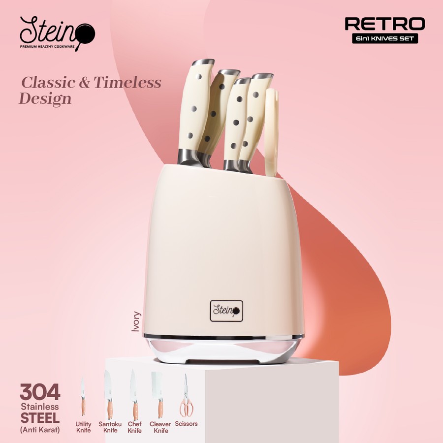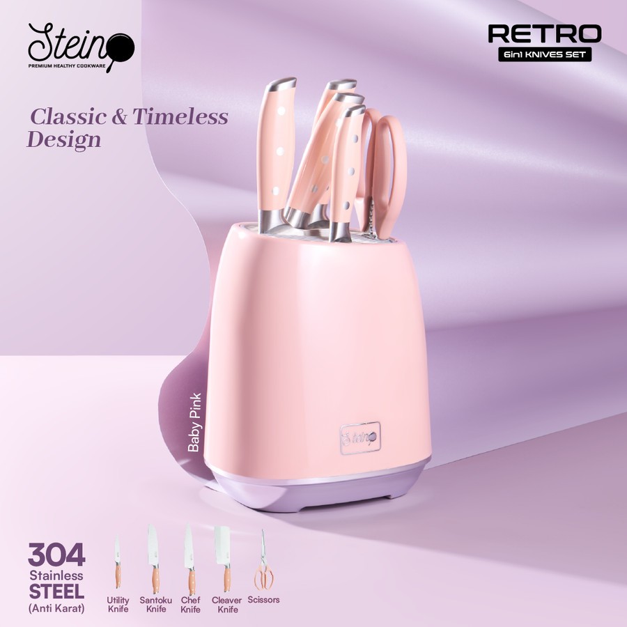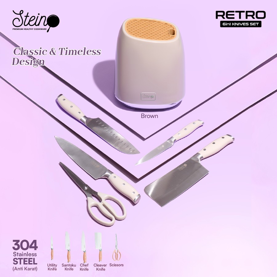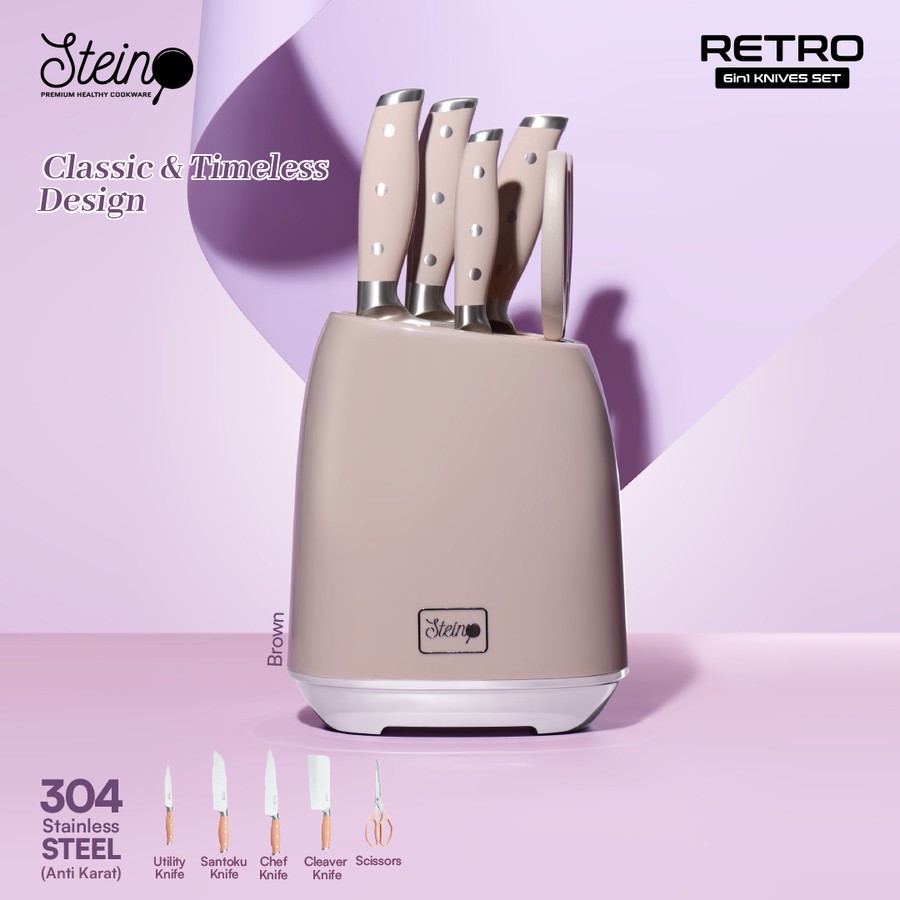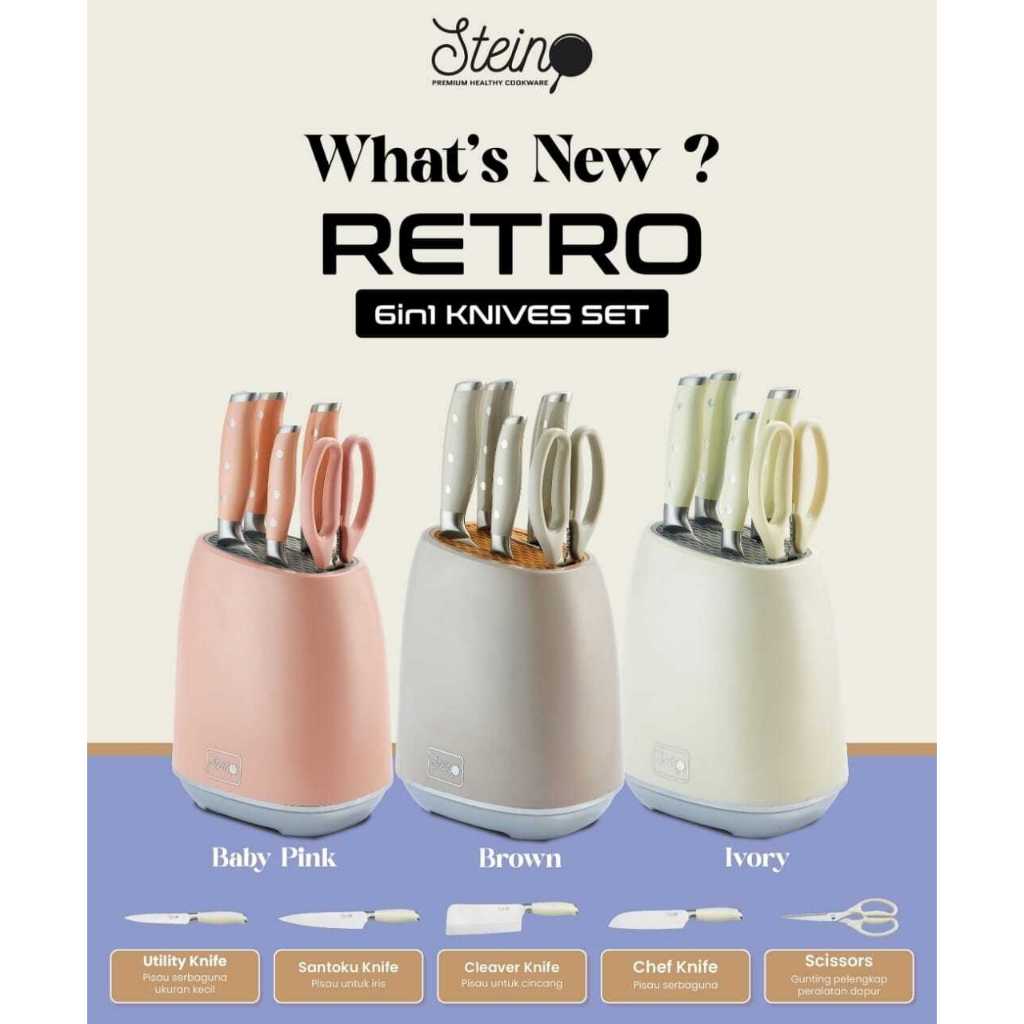 Stein Pisau Dapur Serbaguna Retro Holder Knives 6 in 1 / Pisau Set Holder
