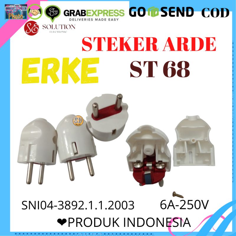 Steker Arde Bulat ERKE ST 68 Colokan Listrik Arde Putih SNI