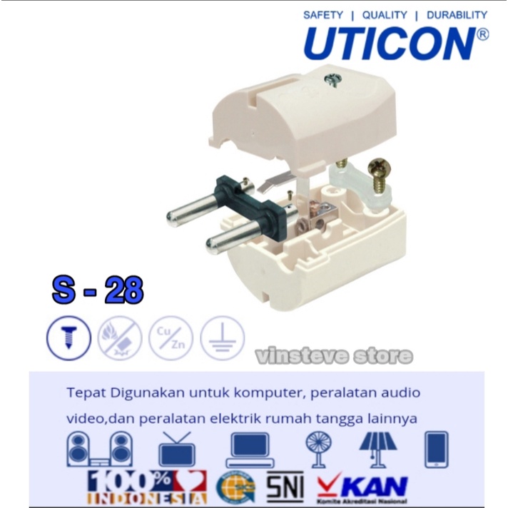 UTICON Steker Arde Tipe S-28 10A/250V (Terminal Kuningan) SNI Premium Quality