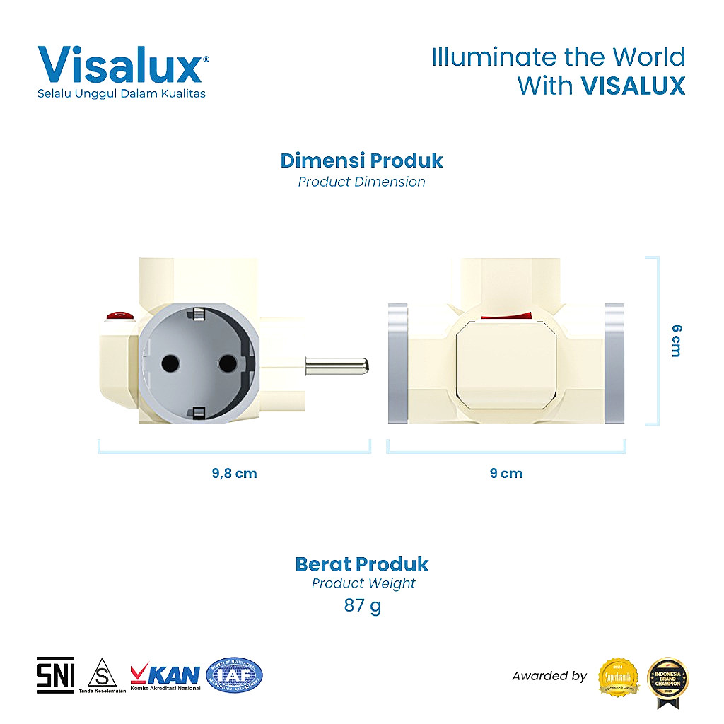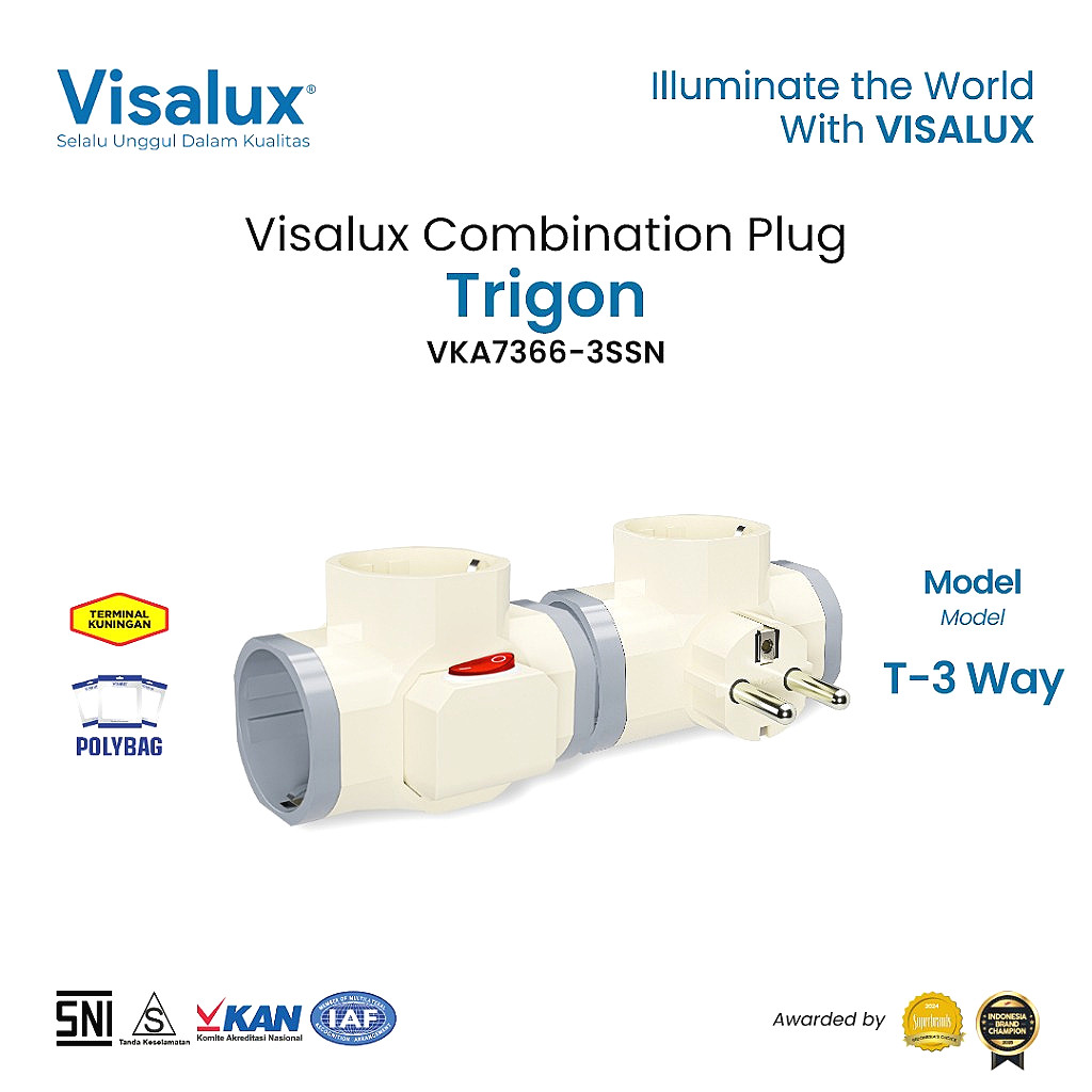 Steker Saklar Kombinasi Trigon VISALUX VKA 7366 3 SSN Plug Multi Colokan Stop Kontak Kaki 2 Cabang 3 Serbaguna