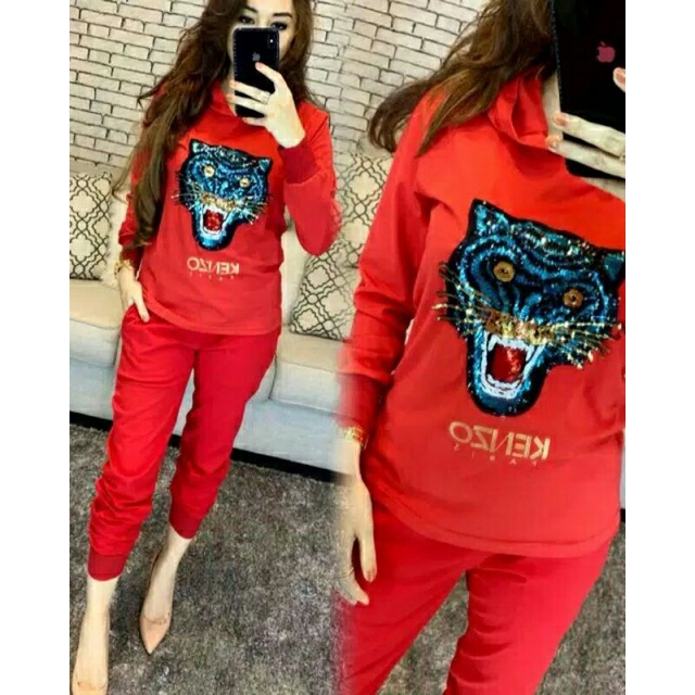 Stelan TIGER merah XL Bahan full babyterry Ada HODIE, Sablon Printing Gliter, Fit XL, LD 110cm, Panjang 63cm, Pjg celana 92cm,Pinggang celana karet, Ada saku