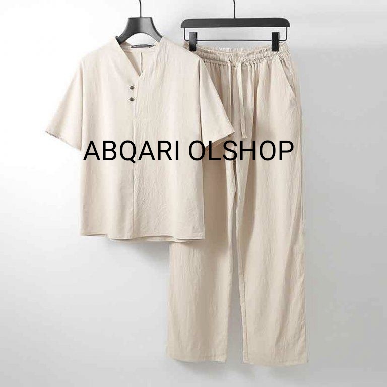 Stelan cowok kekinian / setelan cowok dewasa / setelan linen / Setelan cowok terbaru 2022 / Setelan pria murah
