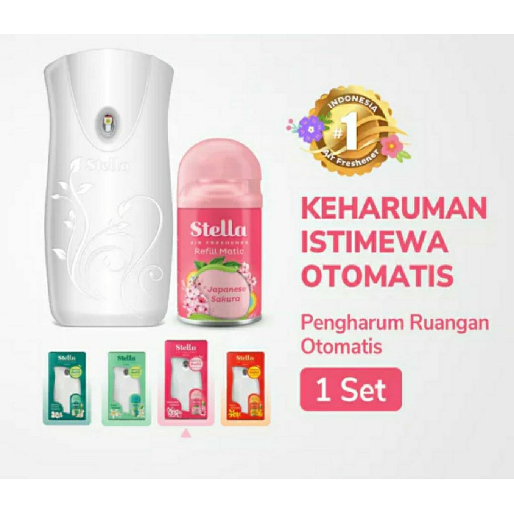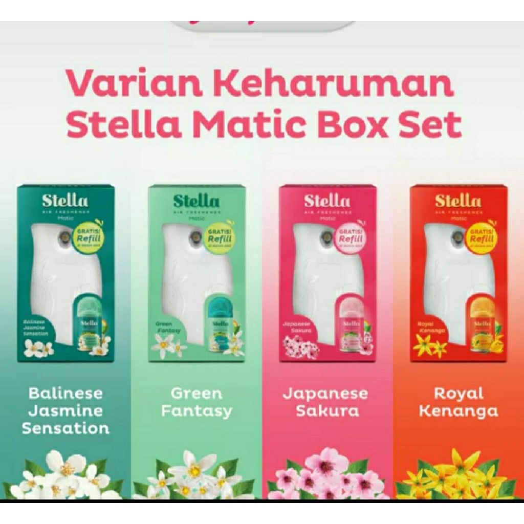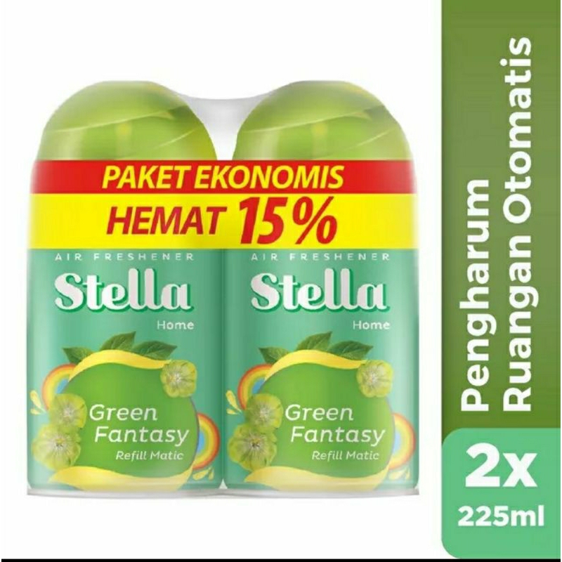 Stella Matic Box Set-Pengharum Pewangi Ruangan Otomatis// stella Matic Green Fantasy Refill 225ml Multipack x2// Pengharum Ruangan Otomatis