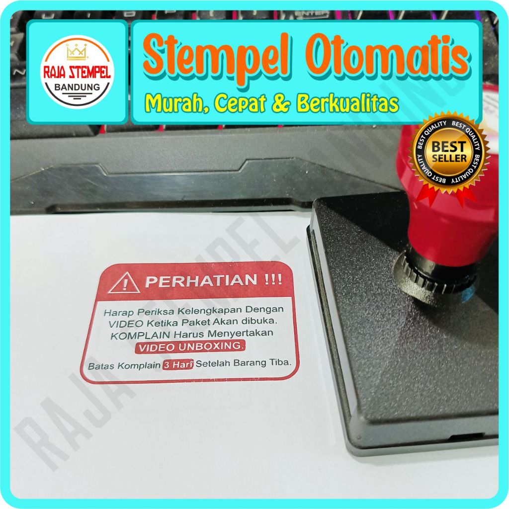 Stempel Flash Persegi Ukuran 7,8x5,3cm legalisir, stampel logo usaha, stemple box kardus unboxing