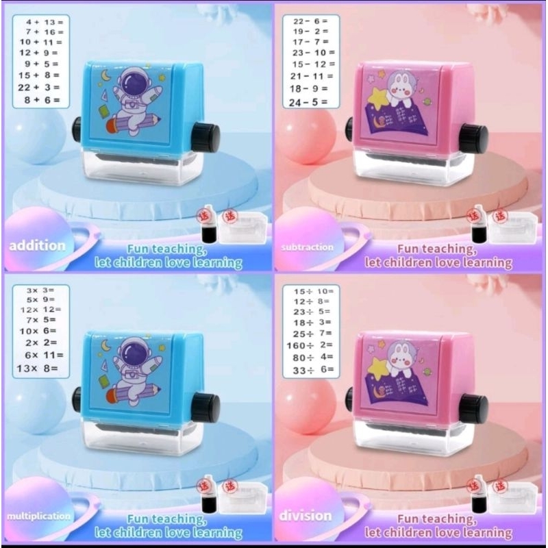 Stempel Matematika stempel Scrollable Stempel Roll Matematika Mini FUN math Stamp Alat Edukasi Belajar anak stempel calistung anak Edukasi montesori