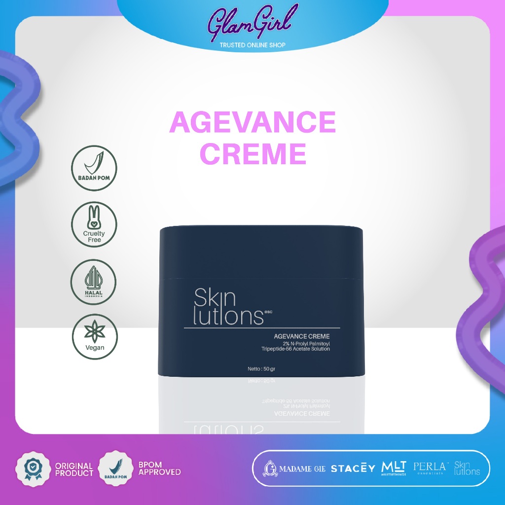 SKINLUTIONS ESC Agevance Creme 2% N-Prolyl Palmitoyl Tripeptide-56 Acetate Solution 2% Niacinamide 5,6% Glycerin / Moisturizer Cream / Brightening Cream / Anti Aging Cream / Krim Mencerahkan / Krim Anti Aging / Krim Pelembab