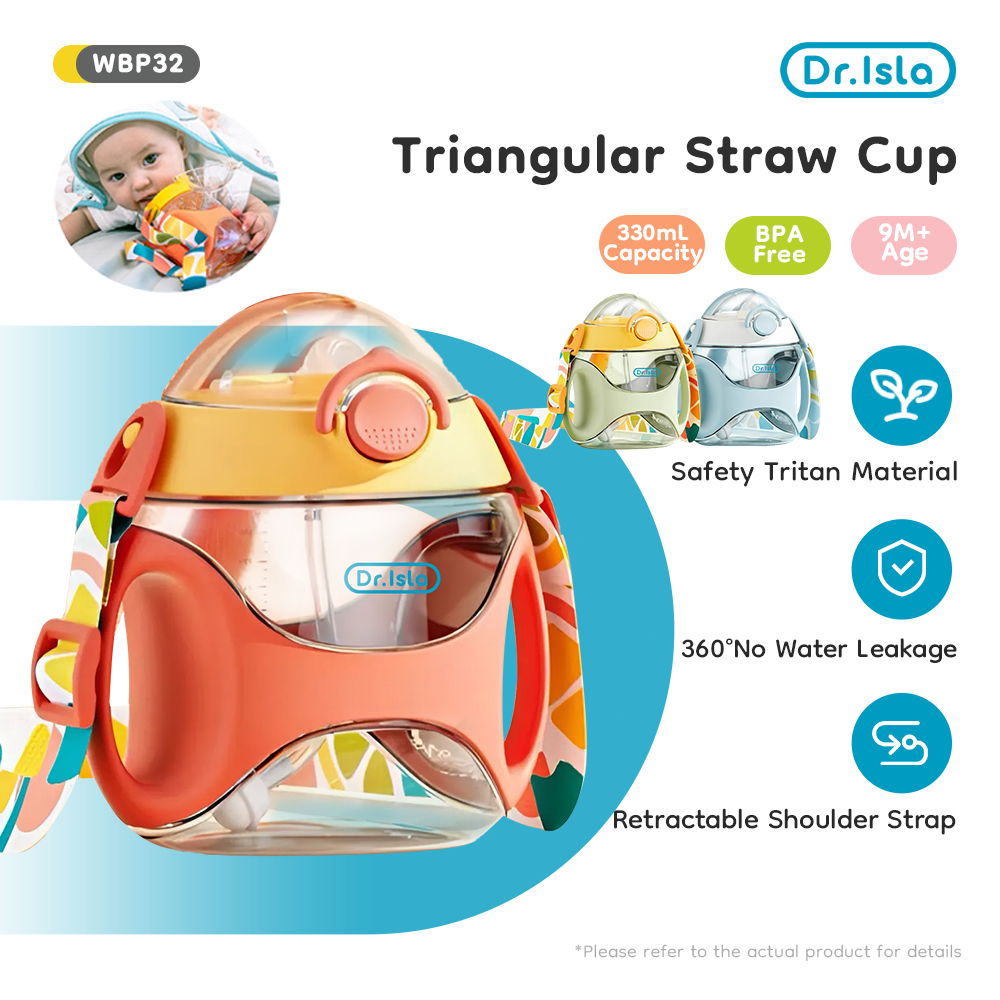 Dr.Isla Botol Minum Anak 330ml Bahan Tritan Botol Straw Sippy Training Cup BPA Free Baby Botol Minum Dengan Pegangan Tangan Tutup Pengaman WBP32