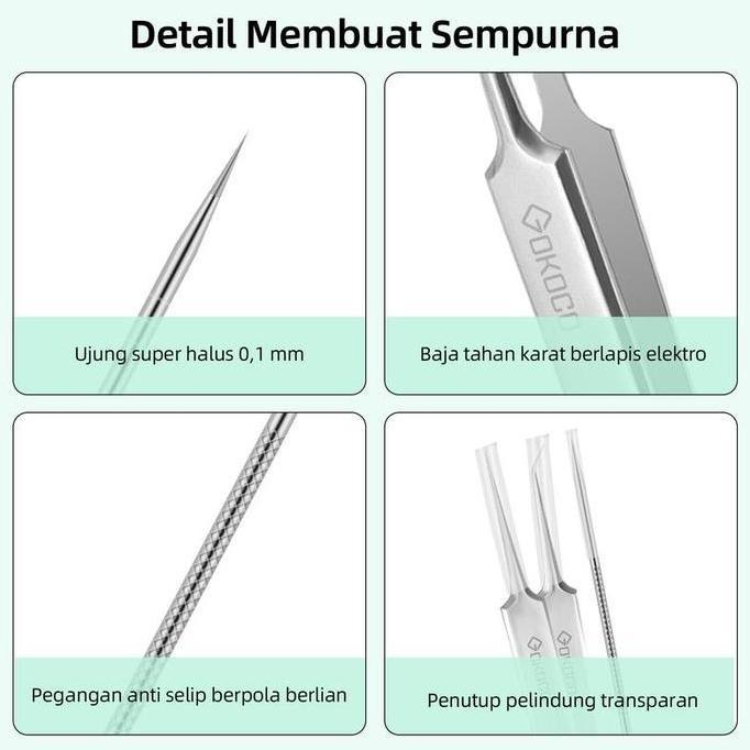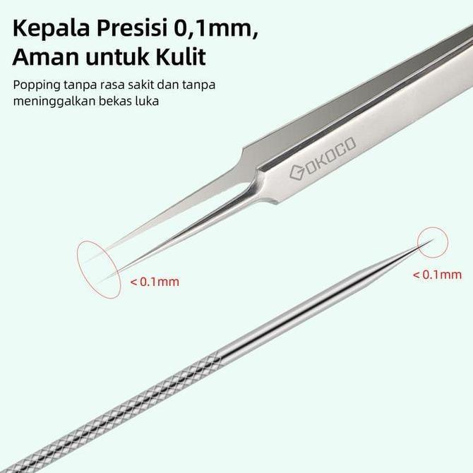 Nursellerjagat - GOKOCO Stainless Steel Acne Remover/Acne Squeezer Blackhead Removal Tool Tweezer Set (8 in 1)