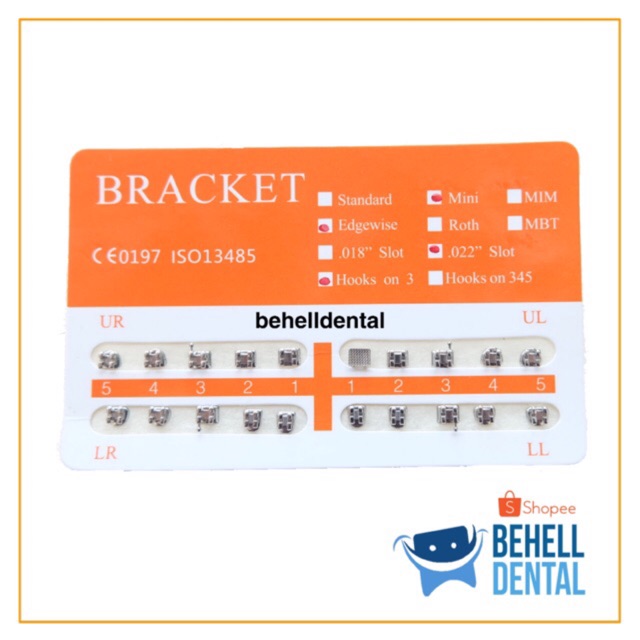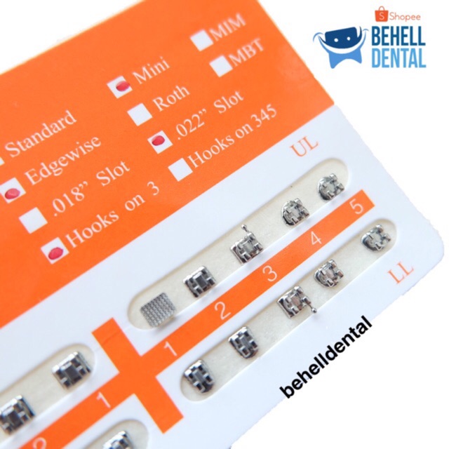 BRACKET BEHEL METAL FANCY OREN 0.22 HOOK 3 MINI • Kawat Gigi Metalic Amplop Orens Orange - Braces Permanen Perbaikan Gigi ORTHODONTICS DENTAL KAWAT GIGI FANCY EDGEWISE - Original Ori Behelldental