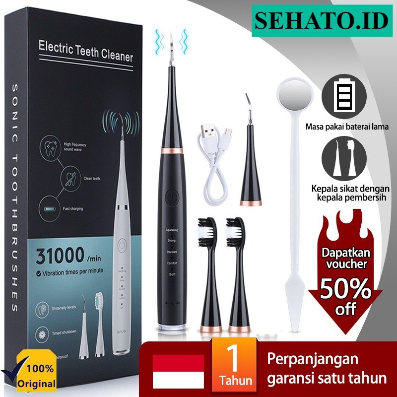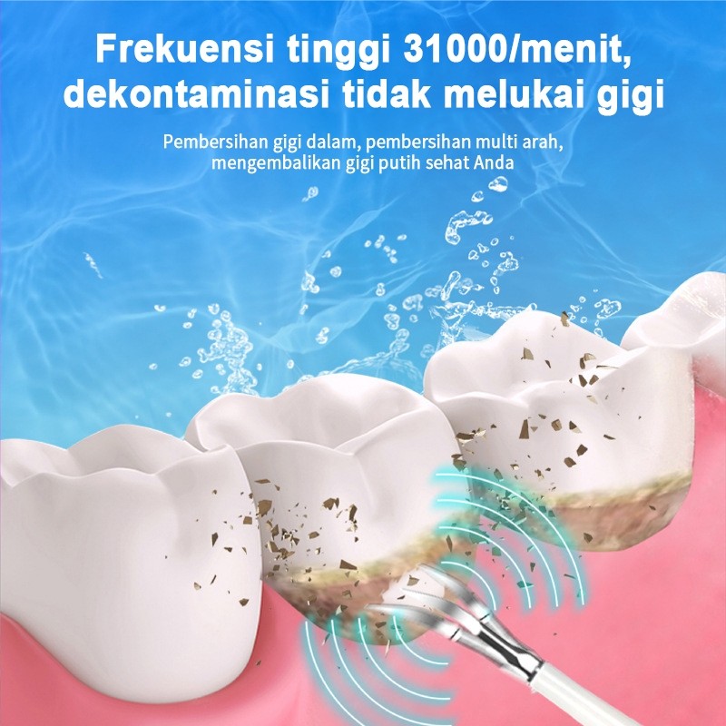 Hanaiso Medan Scaling + Sikat Karang Plak Gigi Otomatis 3 IN 1 Tool Dental Scaler Electric Ultrasonic Toothbrush Portable / Alat Pembersih Penghilang Plak Elektrik / Tartar Remover Tool / Tooth Cleaner IPX6 Waterproof
