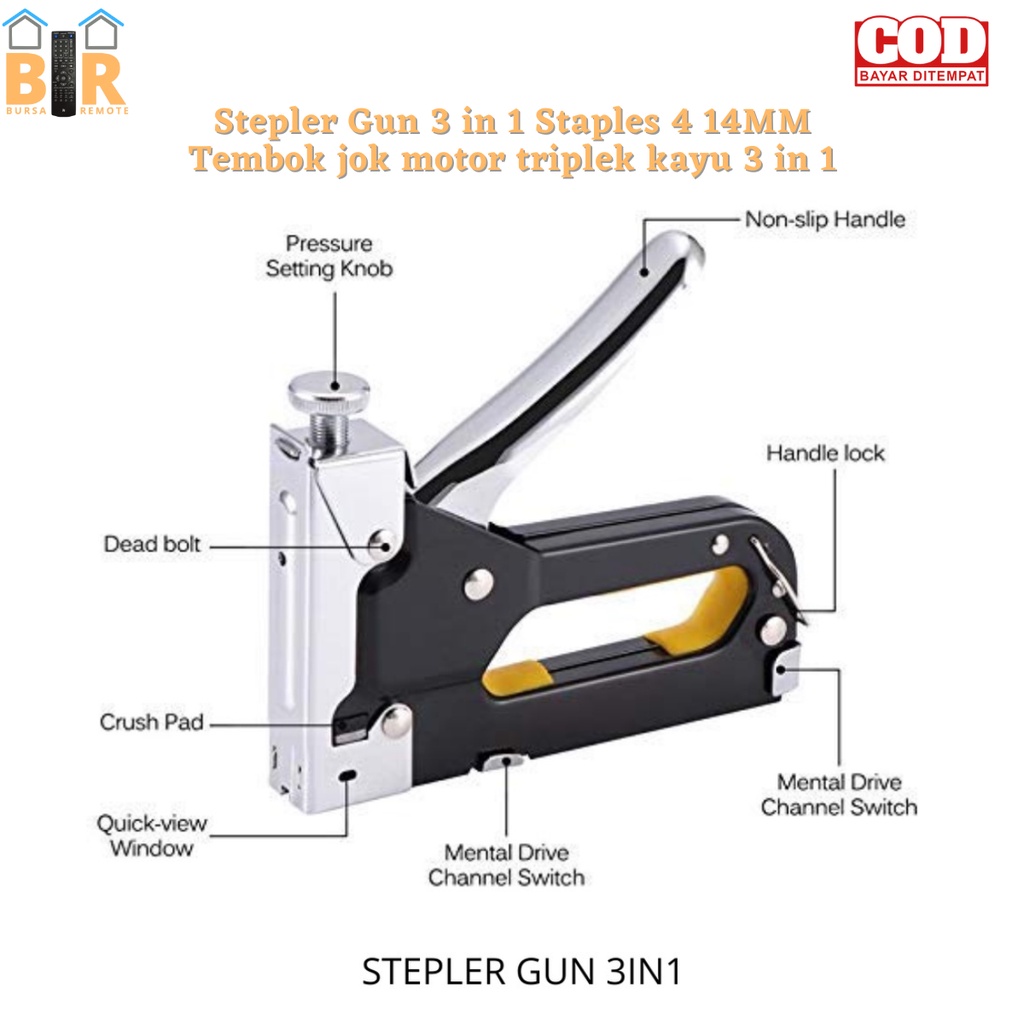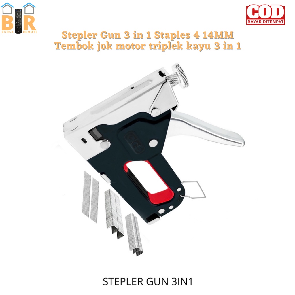 Stepler Gun 3in1 Staples 4 14 MM Tembok jok motor triplek kayu 3in1