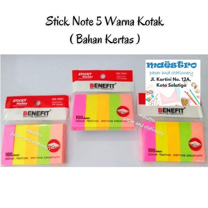 Stick Note 5 Warna / Sticky Notes Plastic Material Kotak / Panah / Memo Stick/ Index & Mark / Pembatas
