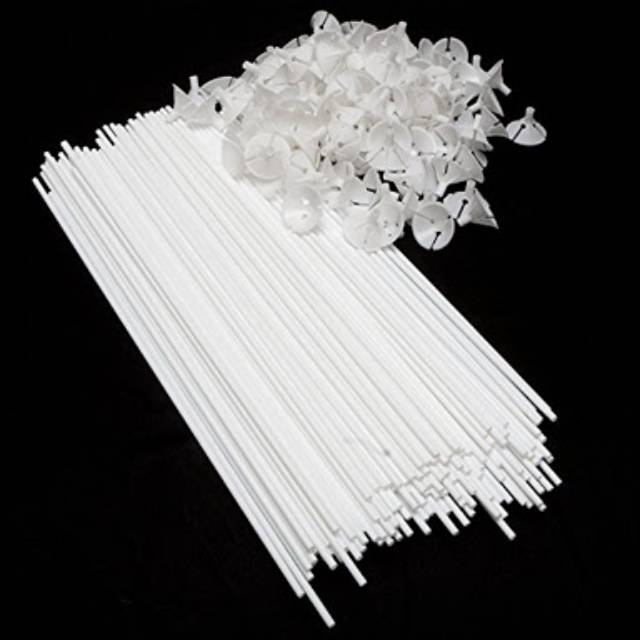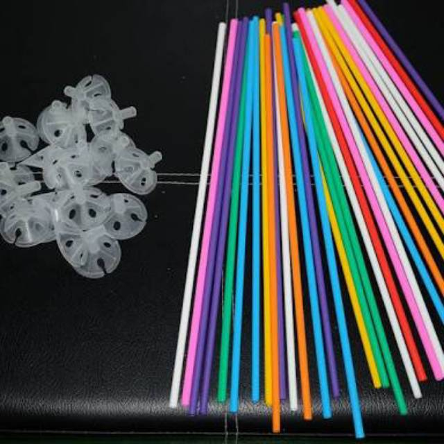 Stick latex + Cup 10 pcs / stick balon / stick balon latex / pegangan balon 40Cm warna mix dan putih