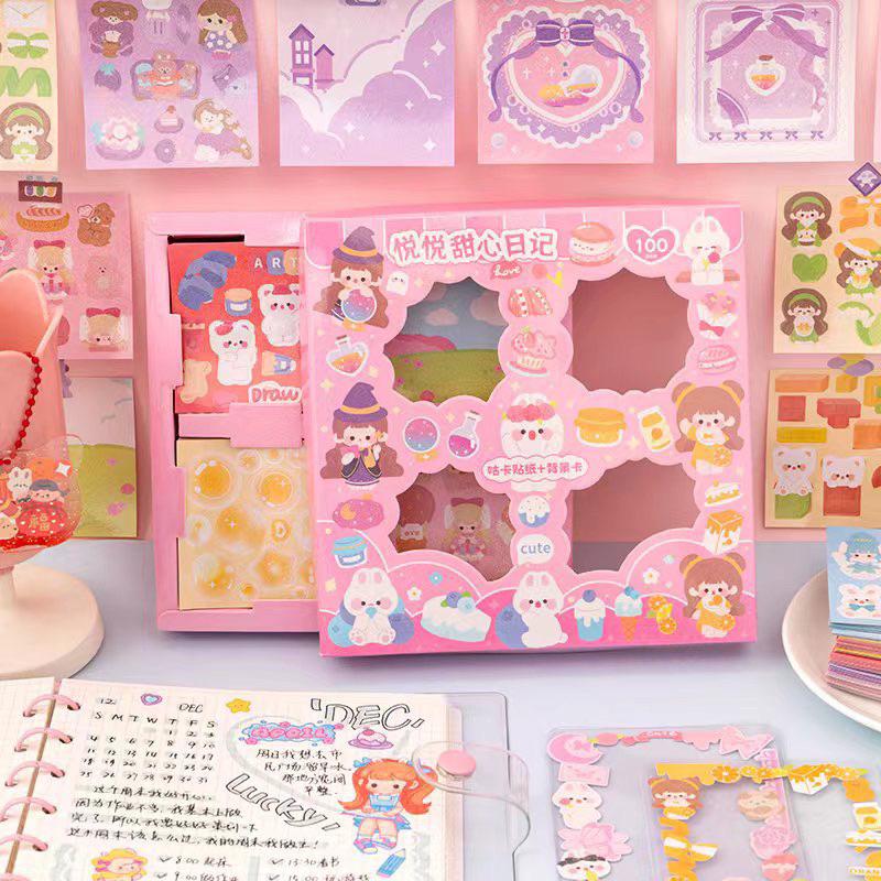 Sticker 2D 1 box isi 100pcs sticker dekorasi tahan air sticker kartun korea - sticker botol gemoy - stiker tahan air - sticker momo - sticker easthetic - sticker 2D lucu kado ulang tahun anak - sticker BT21 BTS MIX CUTE BOX