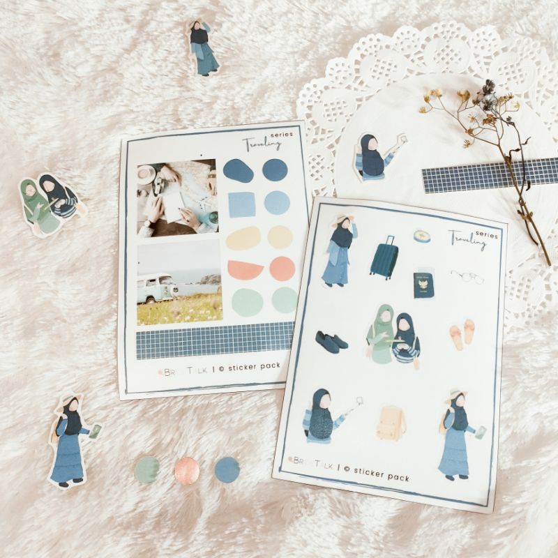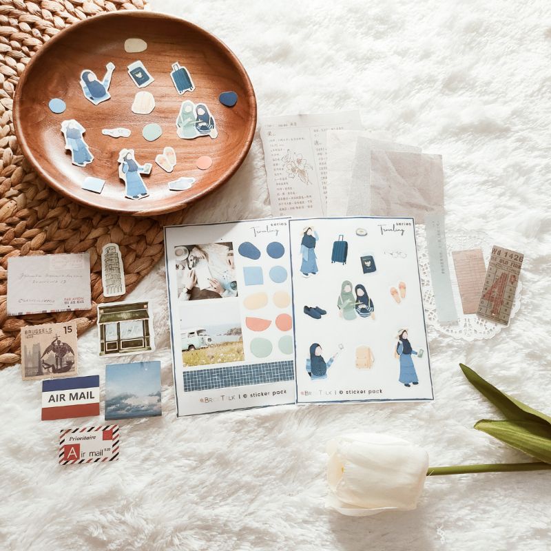 Sticker Aesthetic Biru / Sticker Hijab / Sticker Muslimah Faceless / BuJo Journaling Scrapbook