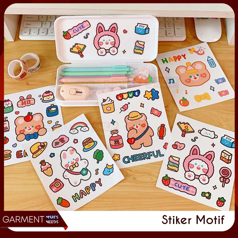 Sticker Aesthetic Kelinci Beruang Lucu Stiker Dekorasi Journal Scrapbook Decor Stickers