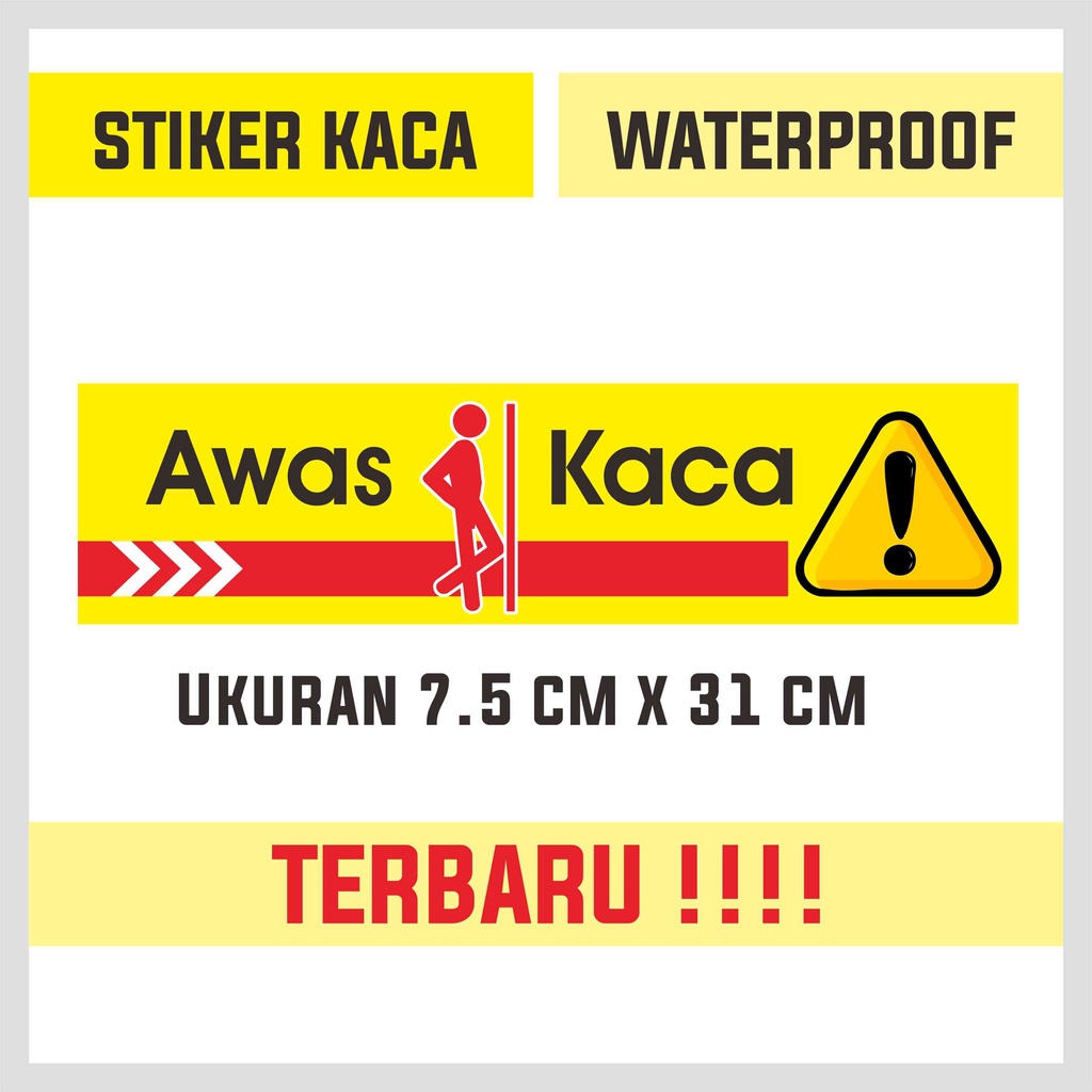 Sticker Awas Kaca - Stiker Waterproof Awas Kaca - Laminating - Tahan Air