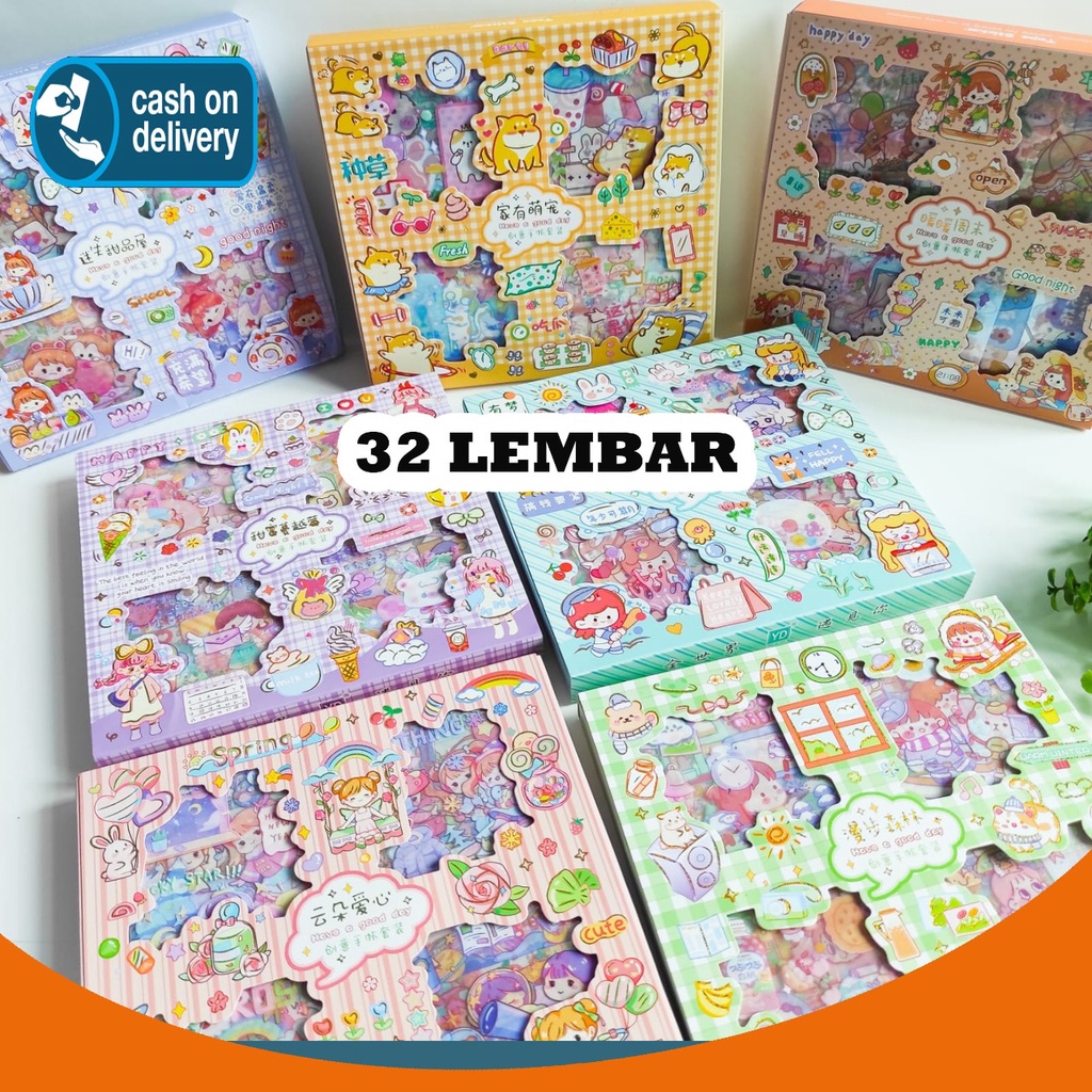 Sticker BOX SENMU isi 32 lembar Set Daily Manual Cute Pattern Decorative Tape Sticker Gift CRAFT