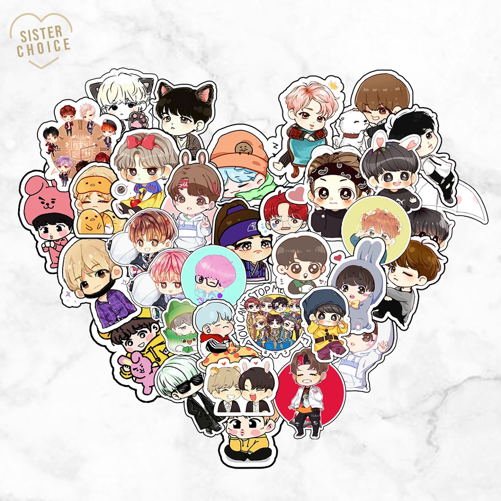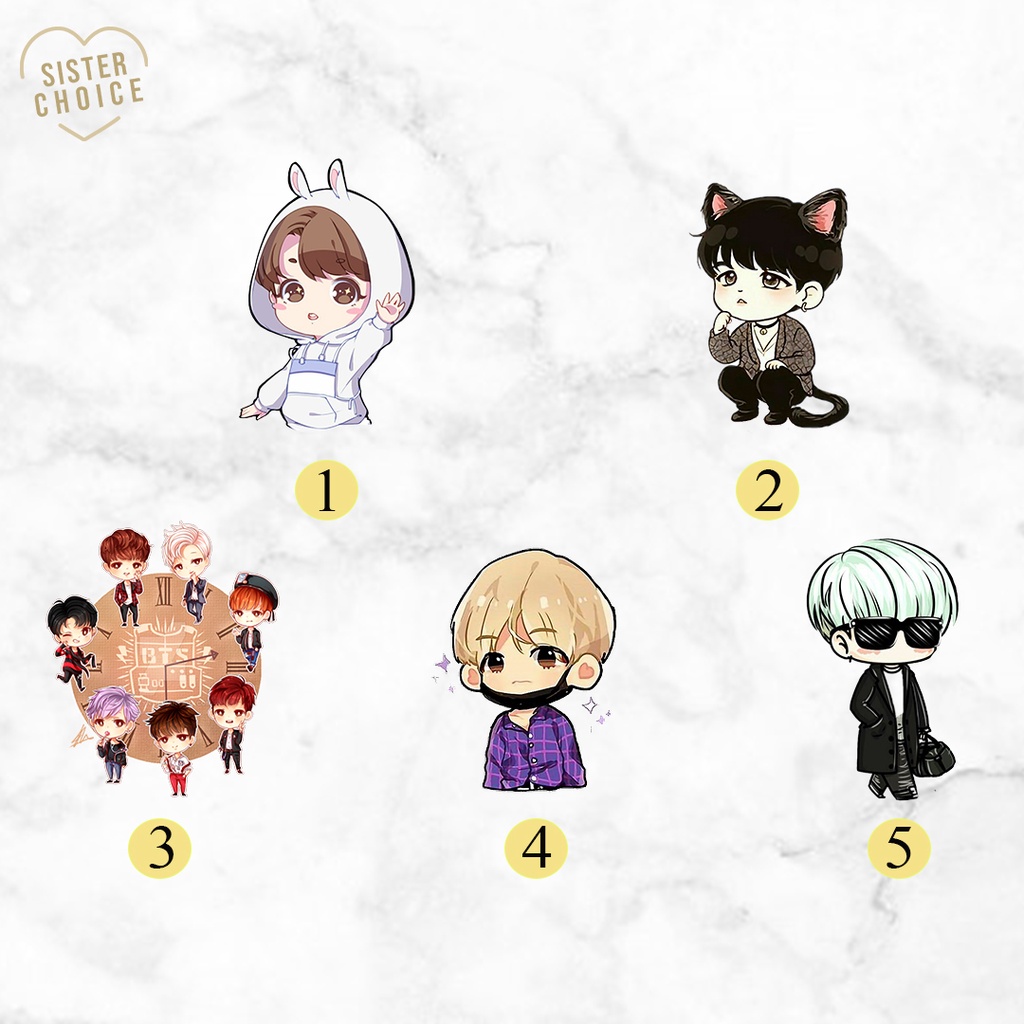 Sticker BTS Chibi Cute / Stiker BTS Cartoon / Sticker Kartun BTS | Sticker Lucu Estetik Jurnal Scrapbook Tumbler HP Laptop DIY
